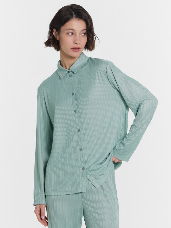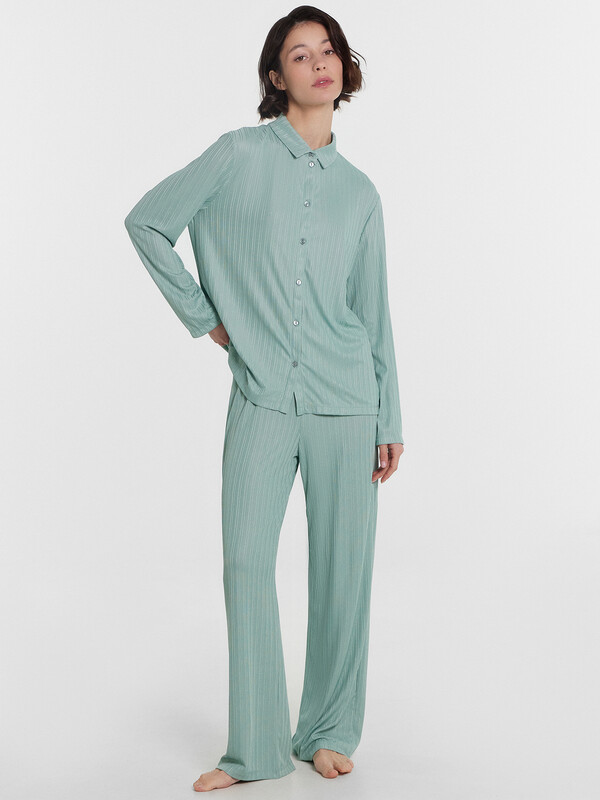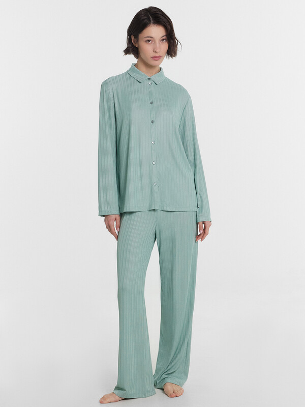 Комфортная пижама женская в "костюмном стиле" из высококачественного материала для приятных снов и домашних дел. Рубашка прямая, с отложным воротником, длинными комфортными рукавами, застегивается на пуговицы. Дополняют ее легкие брюки с посадкой на талии свободного силуэта. Пояс цельнокроеный с тесьмой эластичной внутри. В пижаме абсолютно не жарко, комфортный материал не сковывает движений. Красивая и интересная модель на каждый день. Такую пижаму можно использовать как комплект одежды для дома и отдыха, или как пижаму для сна. В линейке много интересных расцветок, широкий размерный ряд, есть актуальные варианты для девушек с пышными формами plus-size. Купить пижаму женскую недорого можно у нас на сайте и в магазинах. Лучший выбор домашней одежды на каждый день от Mark Formelle. Рекомендуем!