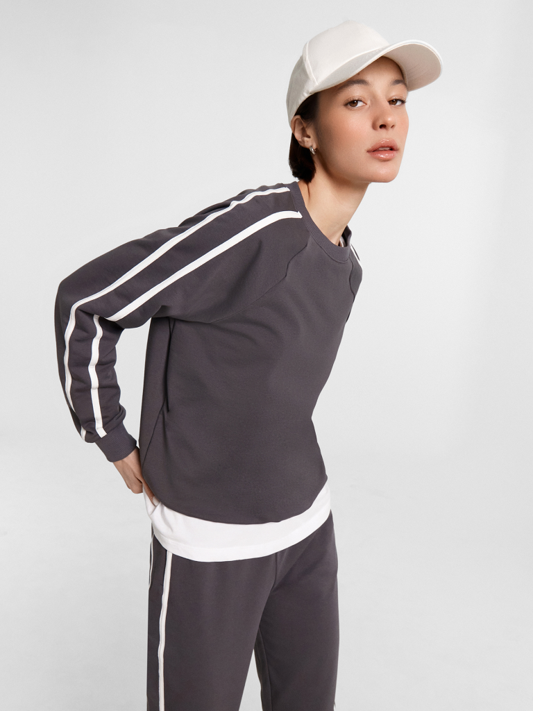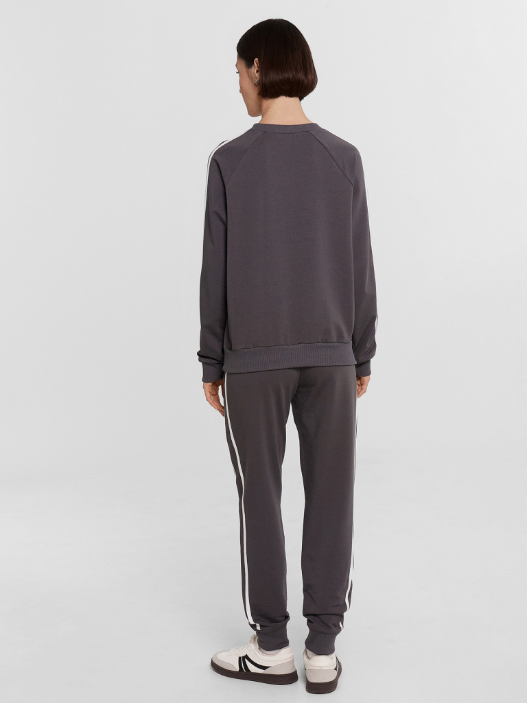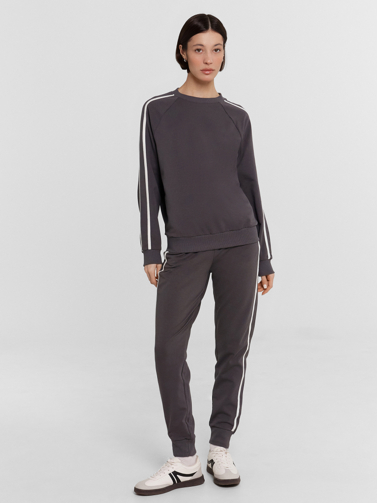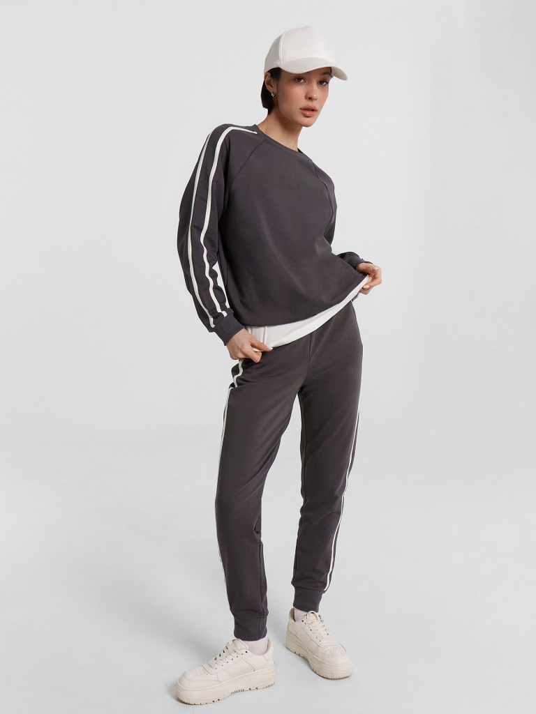 Познакомьтесь с нашим стильным спортивным костюмом, выполненным из футера без подчеса! В состав материала входит натуральный хлопок с добавлением полиэстера и эластана, что обеспечивает прочность и свободу движений. Этот комплект станет идеальным выбором для занятий спортом и активного отдыха. Джемпер прямого силуэта с длинными рукавами на манжетах и эластичным поясом на нижнем срезе создает комфортный и стильный образ. Лампасы добавляют спортивный акцент, а мягкий материал обеспечивает тепло и уют. Брюки зауженного к низу кроя с манжетами, боковыми карманами и лампасами дополняют костюм, создавая гармоничный комплект. Широкий эластичный пояс дарит особый комфорт и надежную фиксацию во время движений. Такой спортивный костюм идеально подходит для любых активностей, сочетая в себе практичность и стиль.