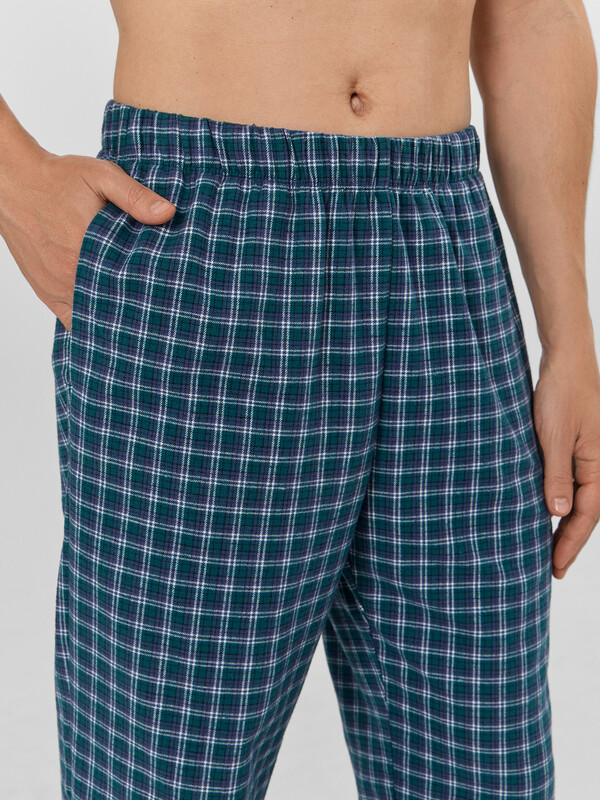 Доминантой дизайна выступает стильная клетка, а тонкое сочетание с полоской придает комплекту особый шарм и визуальную глубину. Мягкая дышащая ткань обеспечивает идеальный микроклимат, делая этот комплект прекрасным выбором для расслабленного вечера или полноценного ночного отдыха в прохладный сезон.