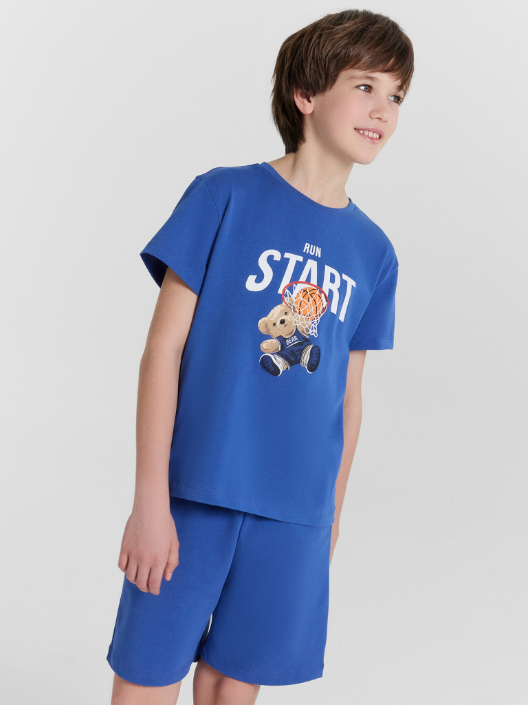 Комплект для мальчиков состоит из футболки и шорт. Футболка прямого силуэта с короткими рукавами. Горловина круглой формы. Шорты длиной до колен. Пояс с эластичной тесьмой внутри. Футболка имеет удобный крой и отличную посадку. Выполнена из 100% хлопка, обеспечивает мягкость и комфорт во время сна. Шорты оснащены эластичным поясом с регулируемым шнурком для комфортной посадки. Пижама идеально подходит ребятам, которые ценят удобство и стильные вещи. Широкий размерный и цветовой ряд. Рекомендуем!