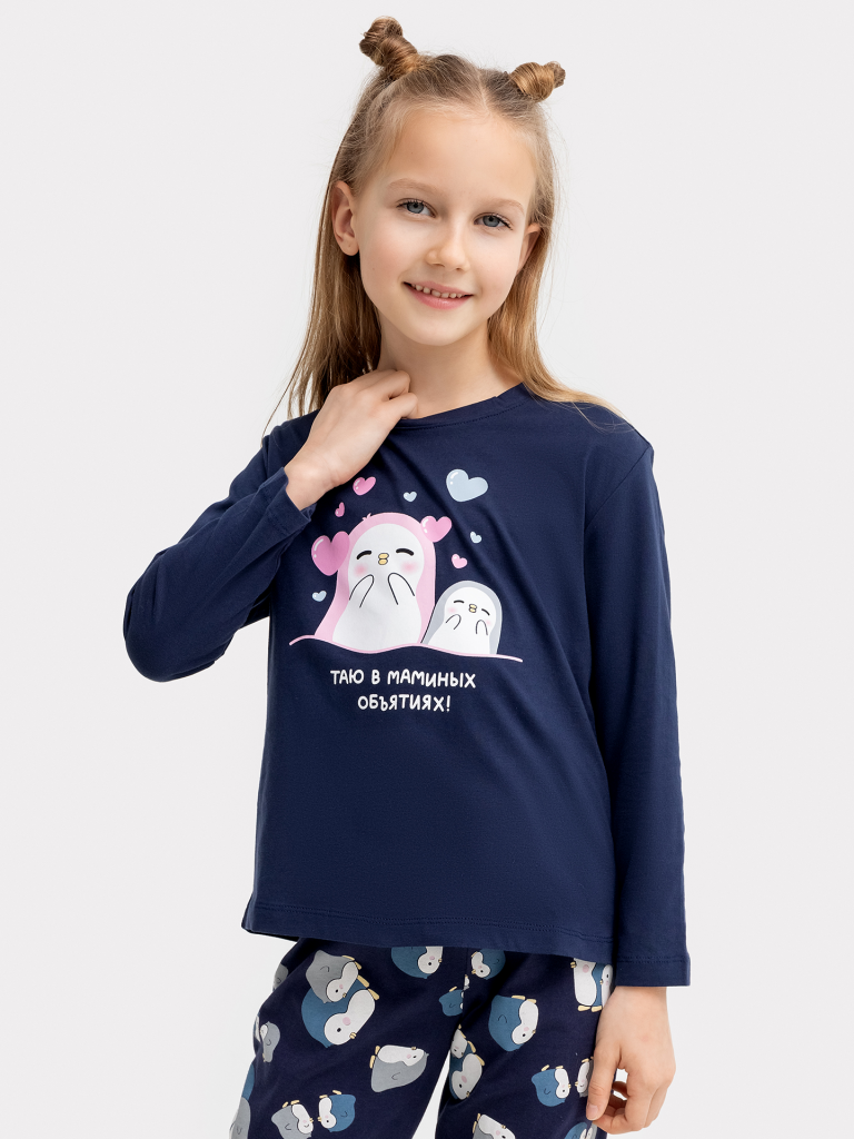Уютный комплект для девочек состоит из джемпера и брюк. Горловина круглой формы из основного полотна. Рукава длинные втачные. Перед и спинка цельнокроеные. Брюки длинные, немного заужены к низу. Пояс цельнокроенный с эластичной тесьмой внутри. Низ брюк с эластичной тесьмой внутри. Стильная и комфортная детская пижама — отличный вариант для прохладного времени года. Широкий размерный ряд, красивые расцветки моделей в линейке. Рекомендуем!