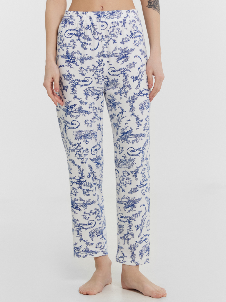 Бриджи с посадкой на талии свободного силуэта. Пояс цельнокроенный с резиной внутри 40 RV. Низ обработан в подгибку.