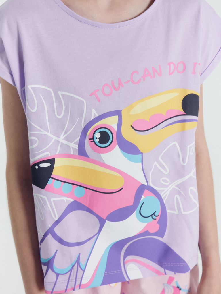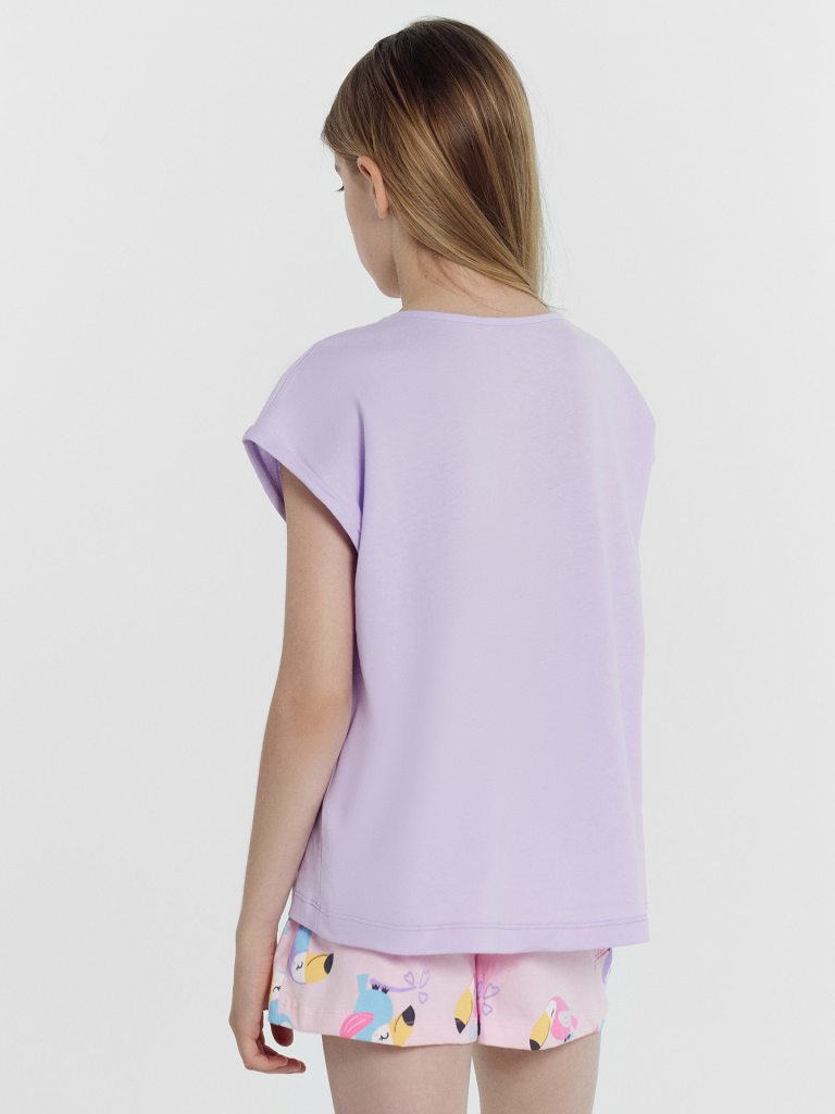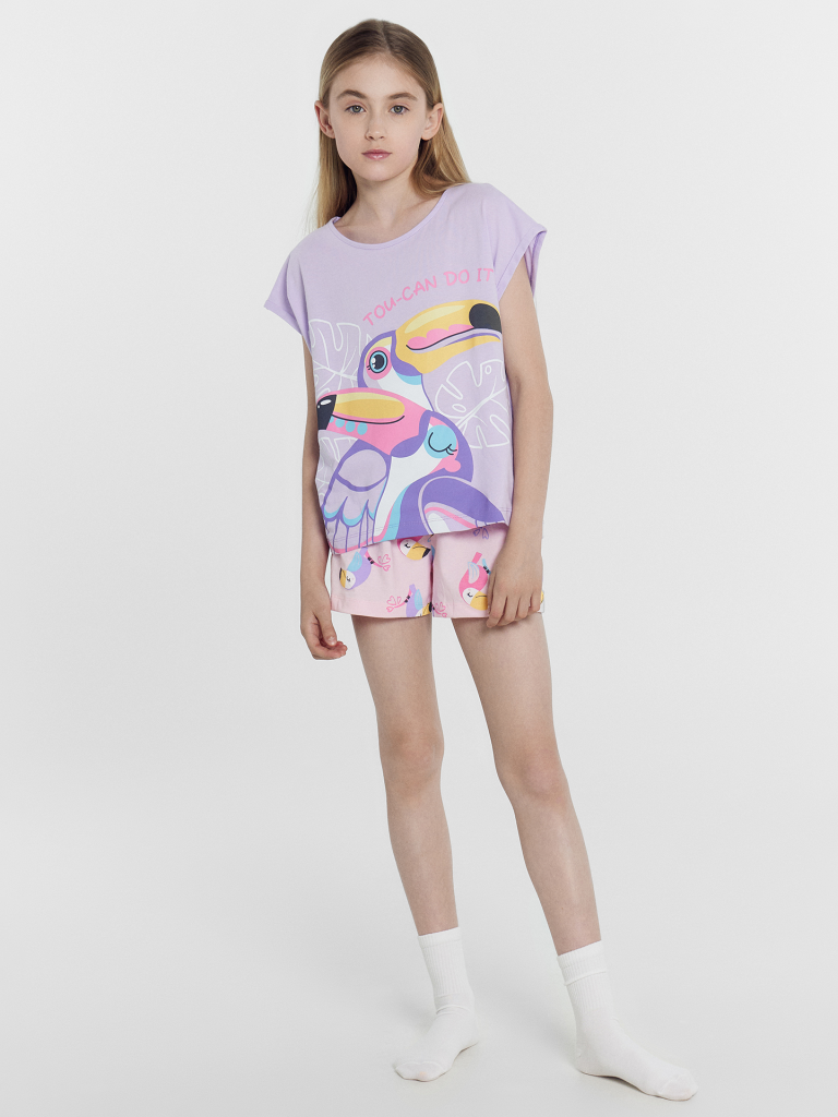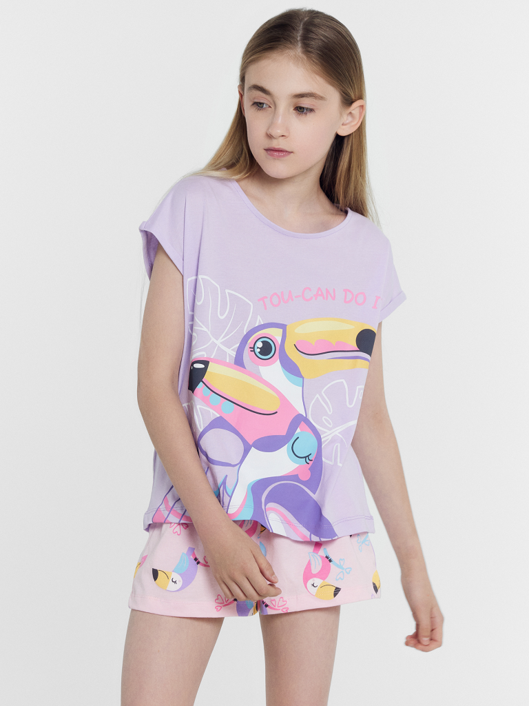 Комплект для девочки из футболки и шорт, в составе натуральный высококачественный хлопок. Пижама для девочки из футболки с шортами — отличный выбор для дома и отдыха. Материал очень приятный к телу, хорошо пропускает воздух, что позволяет чувствовать себя комфортно даже в жаркую погоду. Хорошо подойдет для сна и в качестве домашней одежды. Стильно, красиво, комфортно. Если вы устали от базовых моделей пижам детских, обратите свое внимание на эту. Широкий размерный ряд, базовые и яркие расцветки, модели с принтами, рисунками и печатями. Купите детскую пижаму для девочки от Mark Formelle, порадуйте ребенка красивым и стильным подарком!