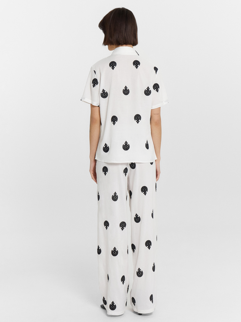 Женский комплект создан для максимального комфорта в повседневной носке. Натуральные материалы — вискоза и лен — обеспечивают хорошую воздухопроницаемость, приятны к телу и дарят легкость даже в жаркую погоду. Они устойчивы к износу, легко стираются и сохраняют аккуратный вид длительное время. Практичный дизайн делает комплект удобным в любых ситуациях. Свободные прямые брюки со средней посадкой и эластичным поясом обеспечивают комфортную посадку, а боковые карманы добавляют функциональность. Укороченная рубашка полуприлегающего силуэта с застежкой на пуговицы подходит как для повседневных образов, так и для более стильных сочетаний. Этот комплект — идеальный вариант для тех, кто ценит удобство, качество и натуральные материалы.