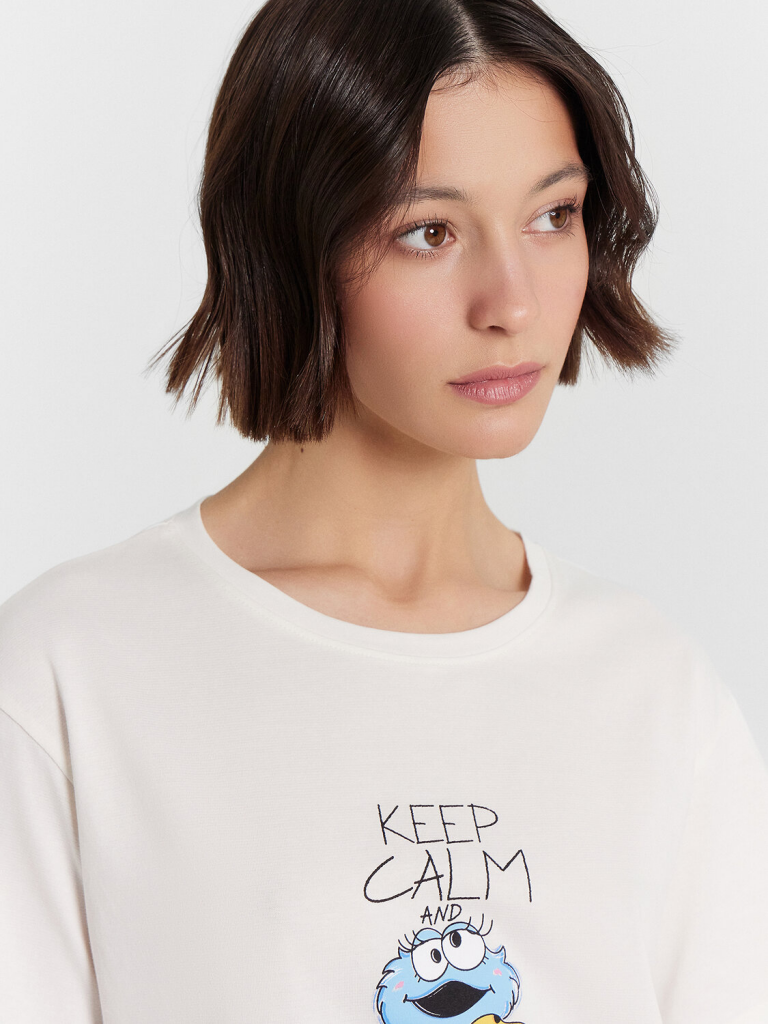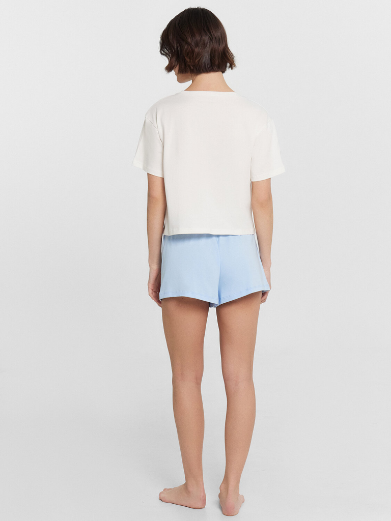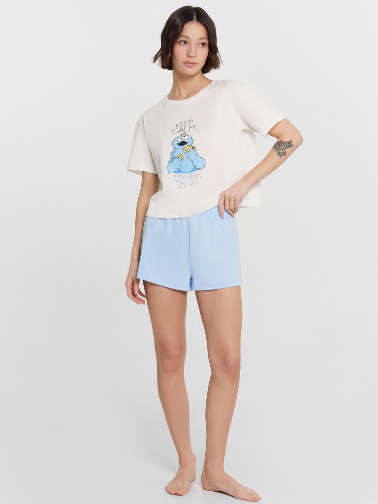 Женская пижама с принтом - отличный выбор для домашних образов. Футболка свободного силуэта с круглой горловиной и короткими рукавами со спущенной линией плеча добавляет легкости и расслабленности. Шорты свободного силуэта с эластичным поясом обеспечивают удобную посадку и свободу движений. Изделие выполнено из хлопковой кулирки - мягкого, дышащего материала, который позволяет коже оставаться сухой и комфортной в течение всего дня. Этот материал не вызывает раздражений и гипоаллергенен, что делает его идеальным для людей с чувствительной кожей. Кулирка также отличается долговечностью и прочностью, сохраняя свою форму и качество даже после многократных стирок. Эта пижама станет вашим любимым выбором для уютных вечеров и расслабленных выходных, предлагая комфорт и стиль в каждом элементе.