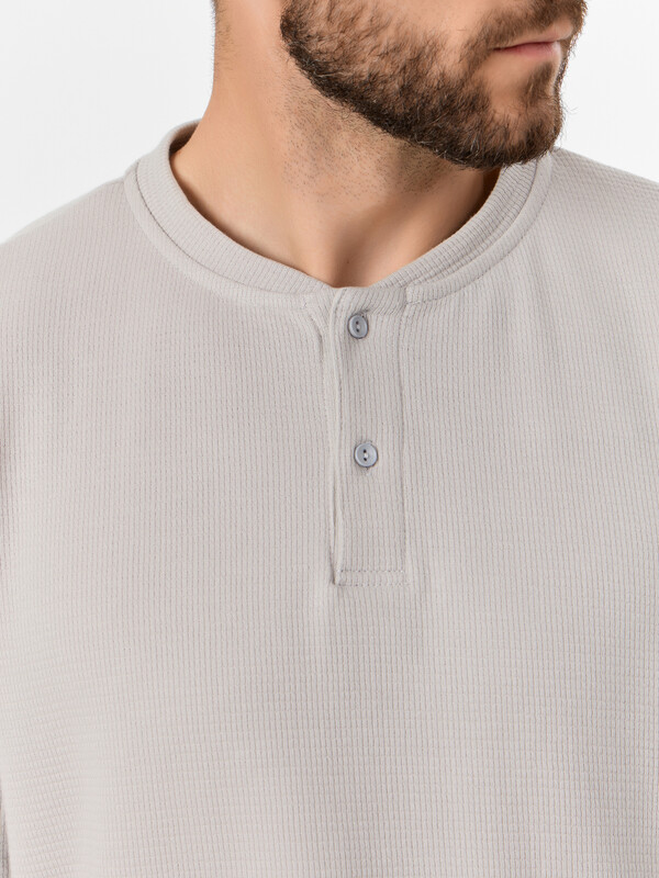 Джемпер свободного силуэта. Горловина округлой формы, обработана бейкой из основного полотна. По переду центральная застежка-планка на петли пуговицы (диаметр 10мм).