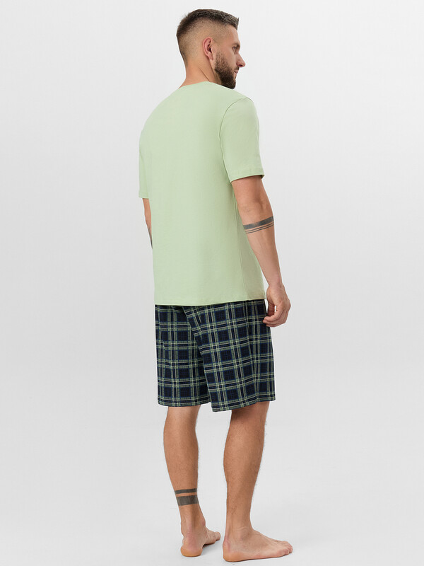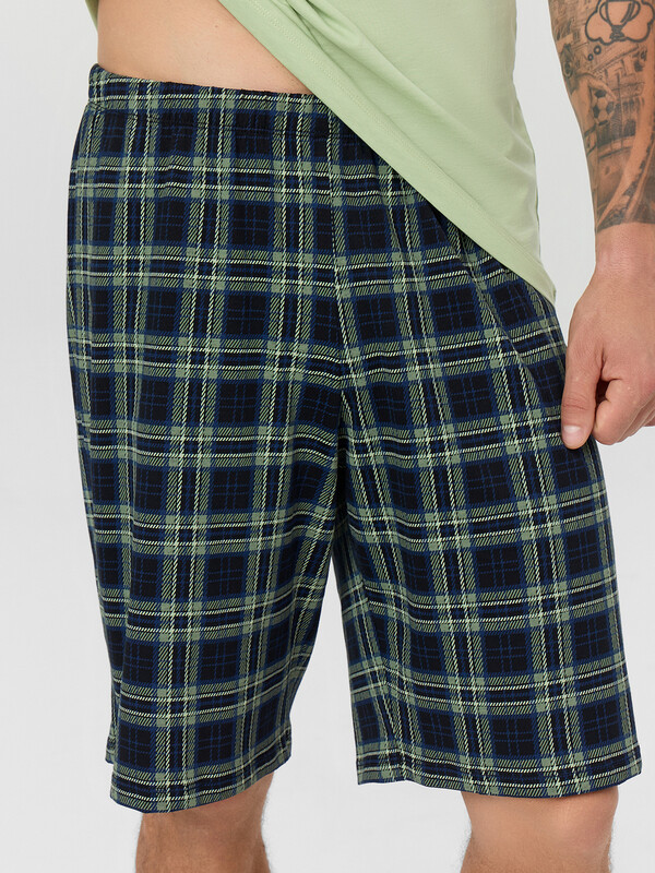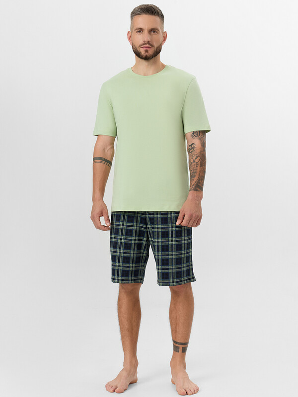 Шорты прямого кроя дополняют комплект, создавая гармоничный ансамбль. Пояс с эластичной тесьмой внутри обеспечивает удобную посадку без дискомфорта. Хлопок делает этот домашний комплект идеальным выбором. Натуральный материал обеспечивает воздухопроницаемость, мягкость и гипоаллергенность.