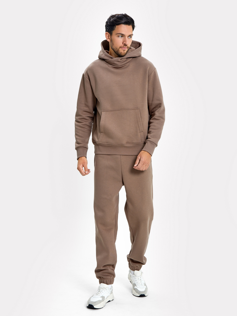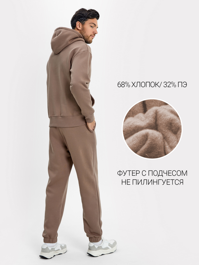 Стильный комплект мужской выполнен из трикотажного футера с подчесом. Анорак прямого силуэта, перед и спинка цельнокроеные. Круглый вырез горловины, с капюшоном. На передней детали настрочен карман-кенгуру. Рукава длинные втачные со спущенной линией плеча. По низу рукавов и анорака притачены манжеты и пояс из рибаны. Брюки свободного силуэта. Посадка средняя. Сидение немного спущено. В боковых швах выполнены функциональные карманы. Пояс отрезной с эластичной тесьмой. Спереди в поясе пробиты петли и протянут шнур. Комфортная и невероятно удобная модель для повседневной носки. Отличный вариант для демисезона. Материал изделия мягкий и приятный. Отлично держит форму и не деформируется. Широкий размерный и цветовой ряд. Рекомендуем эту модель для активных мужчин!
