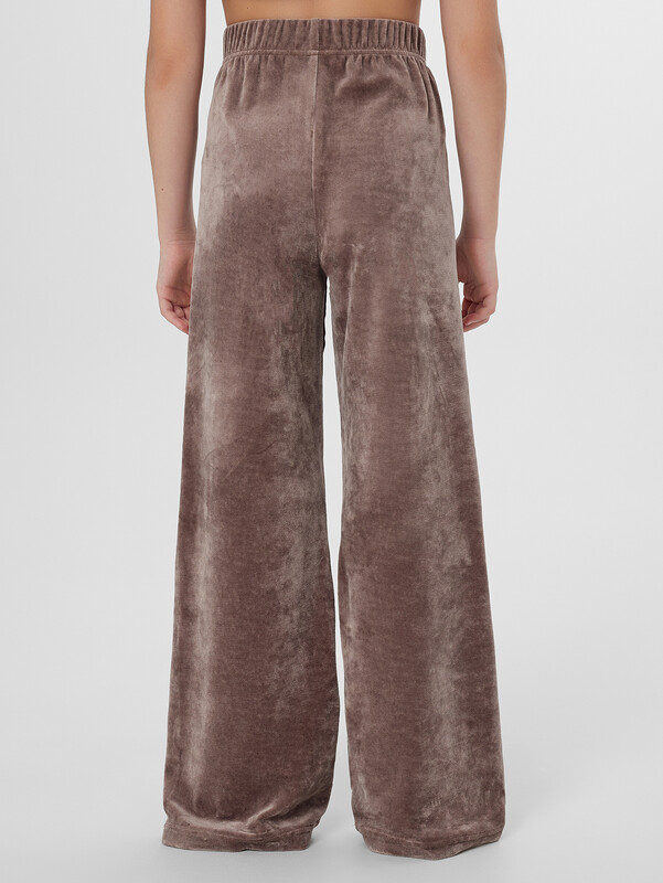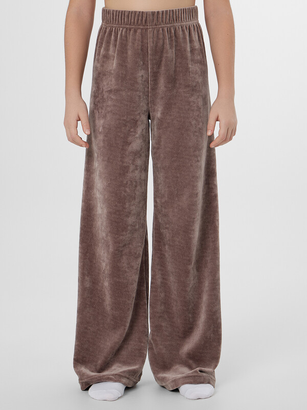 Брюки свободного силуэта. Пояс цельнокроеный внутри с резиной 40RV. Низ брюк в подгибку.