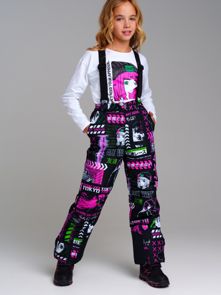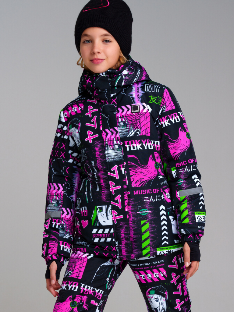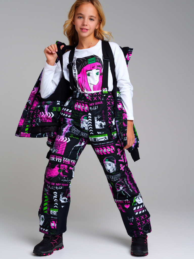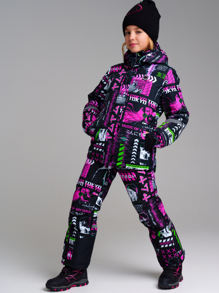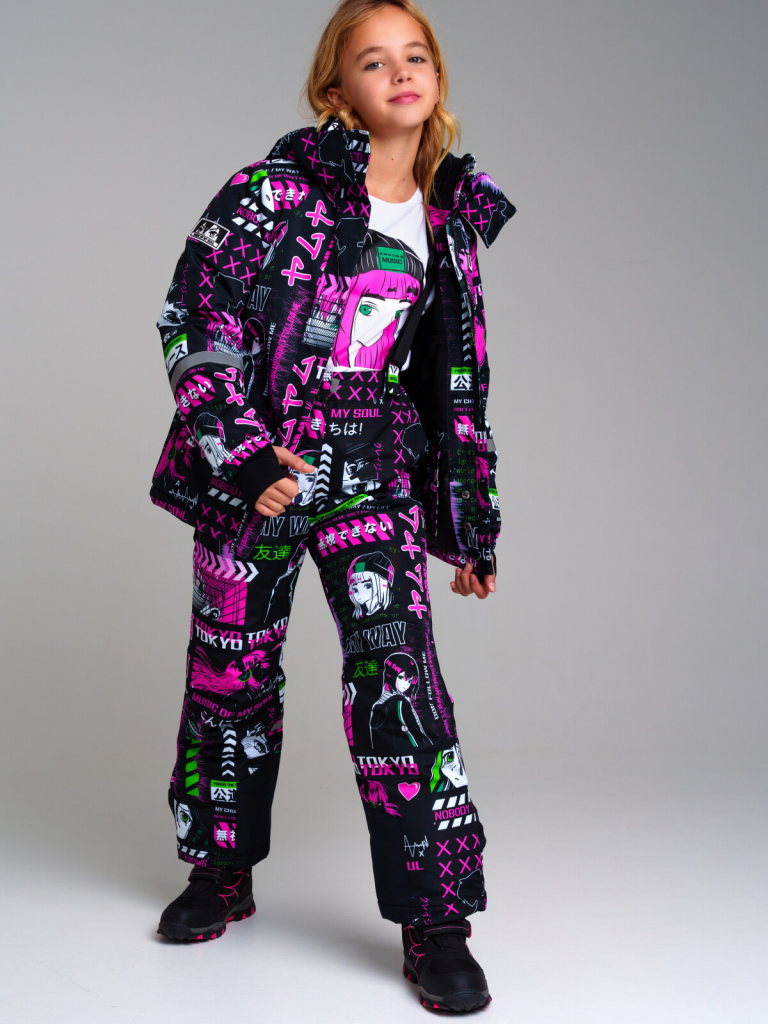 > Комплект текстильный с полиуретановым покрытием для девочек: куртка, брюки разноцветный