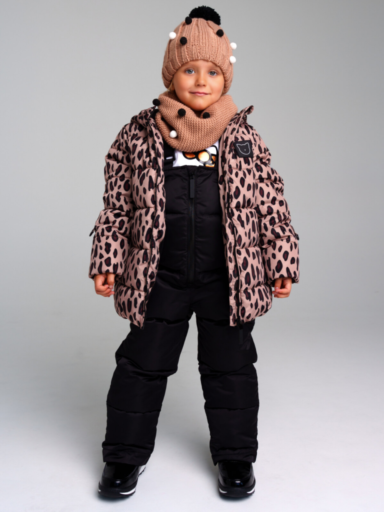 > Комплект текстильный с полиуретановым покрытием для девочек: куртка, полукомбинезон черный,коричневый