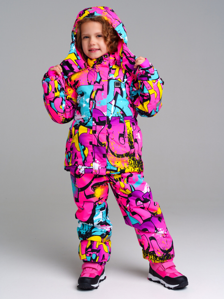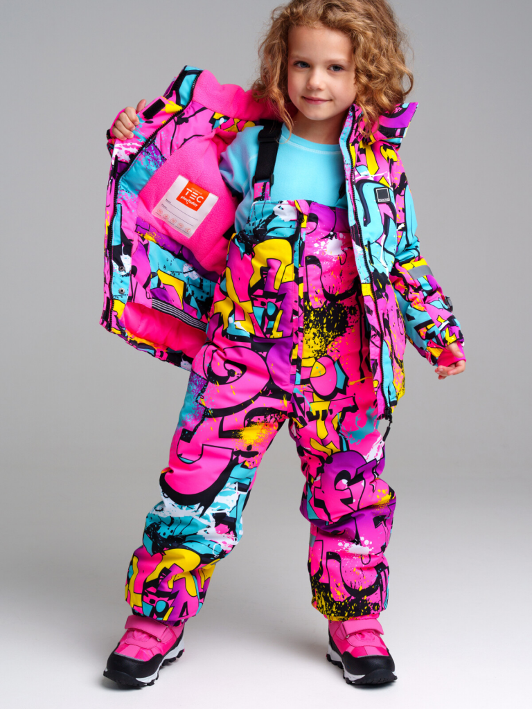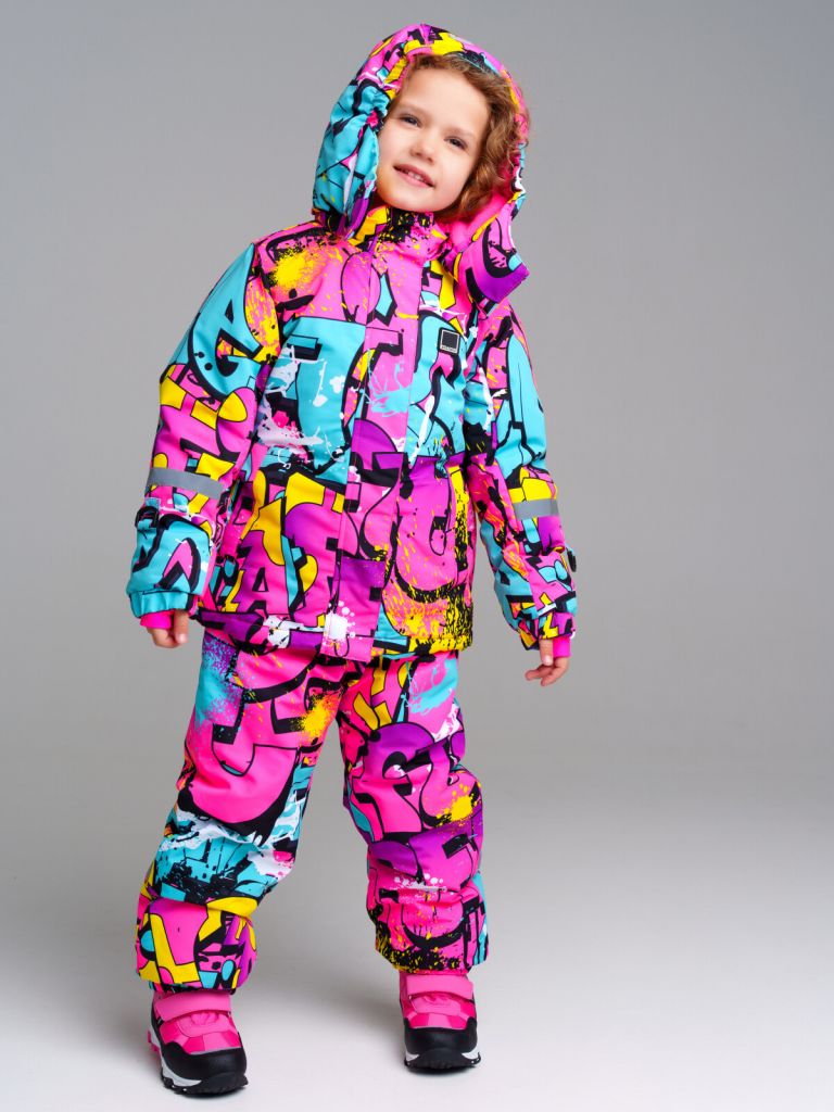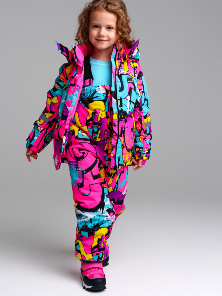 Комплект текстильный с полиуретановым покрытием для девочек: куртка, полукомбинезон разноцветный