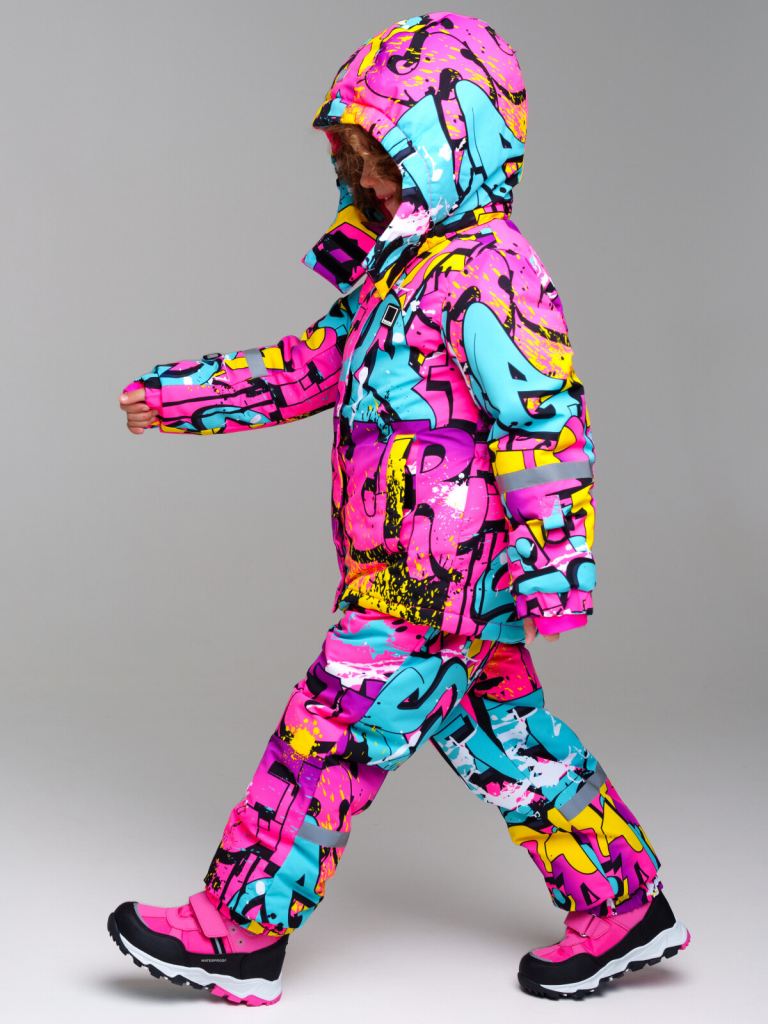 > Комплект текстильный с полиуретановым покрытием для девочек: куртка, полукомбинезон разноцветный