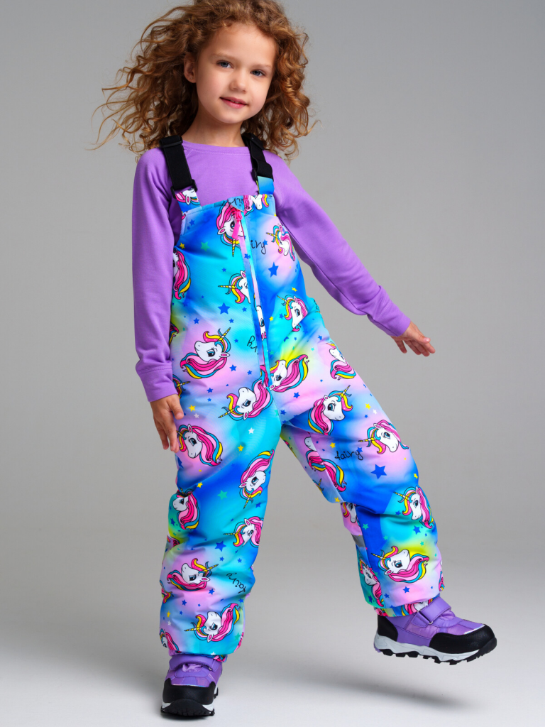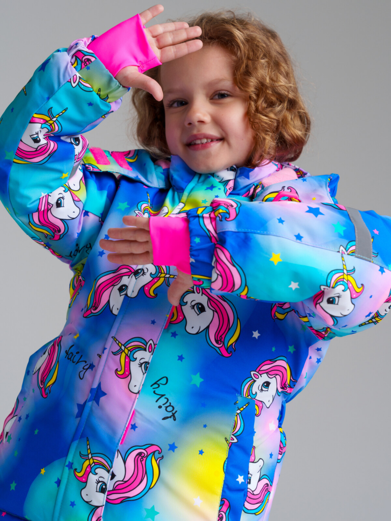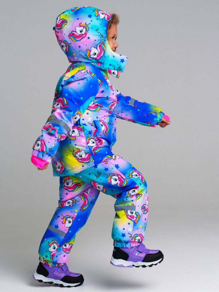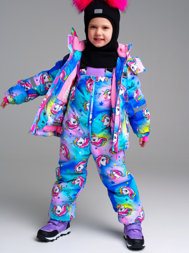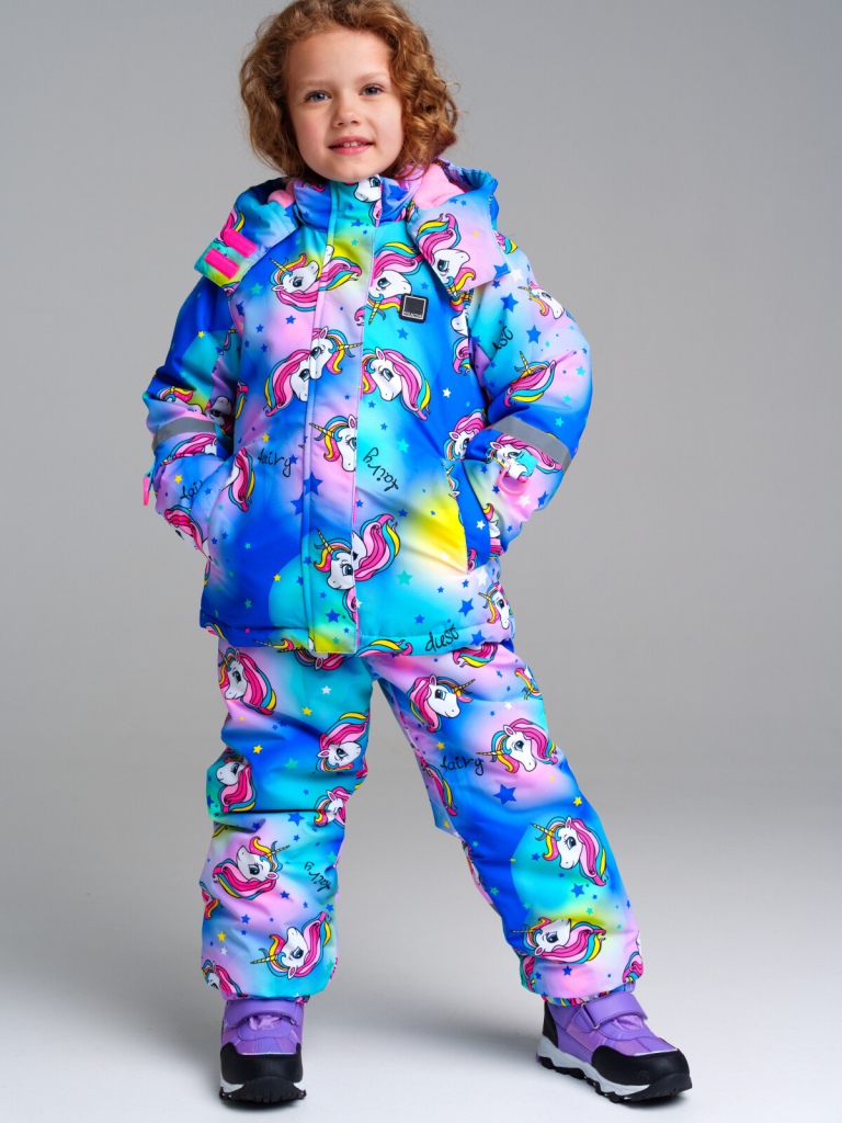 Комплект текстильный с полиуретановым покрытием для девочек: куртка, полукомбинезон разноцветный