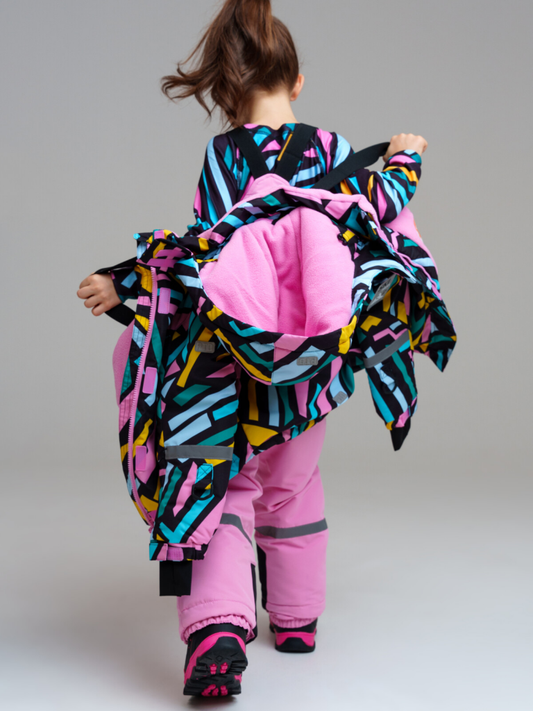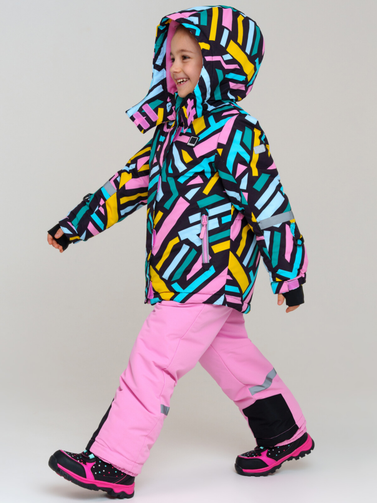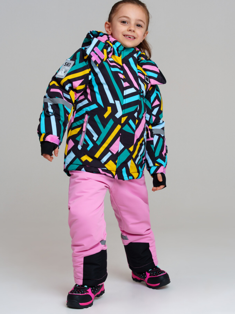 Комплект текстильный с полиуретановым покрытием для девочек: куртка, полукомбинезон разноцветный