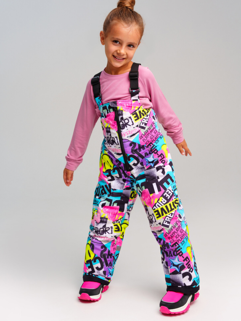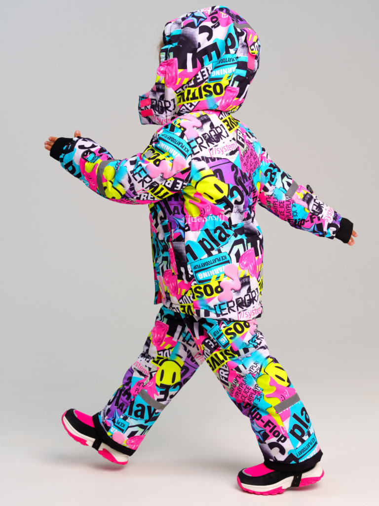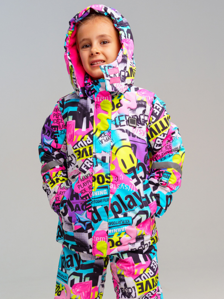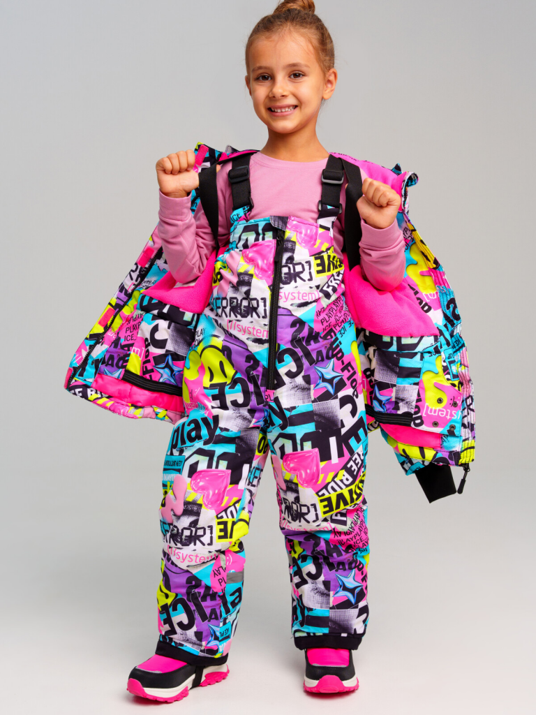 Комплект текстильный с полиуретановым покрытием для девочек: куртка, полукомбинезон разноцветный
