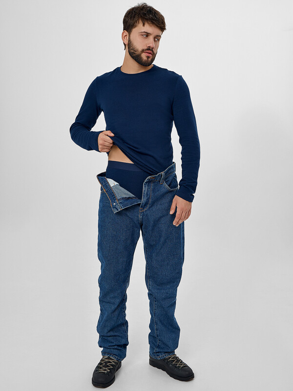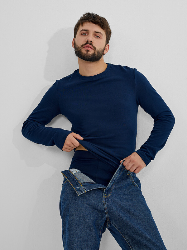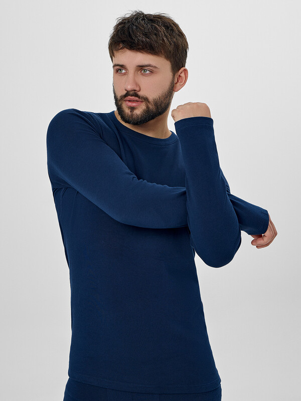 Фуфайка мужская на базе 721466 для спорта и отдыха изготовлен из трикотажного полотна-ЭКО-хлопок с эластаном (теплое белье). Силуэт прямой. Длина до середины бедер. Горловина с притачной обтачкой. По горловине проложена декоративная строчка на 0,2 мм (по изделию).