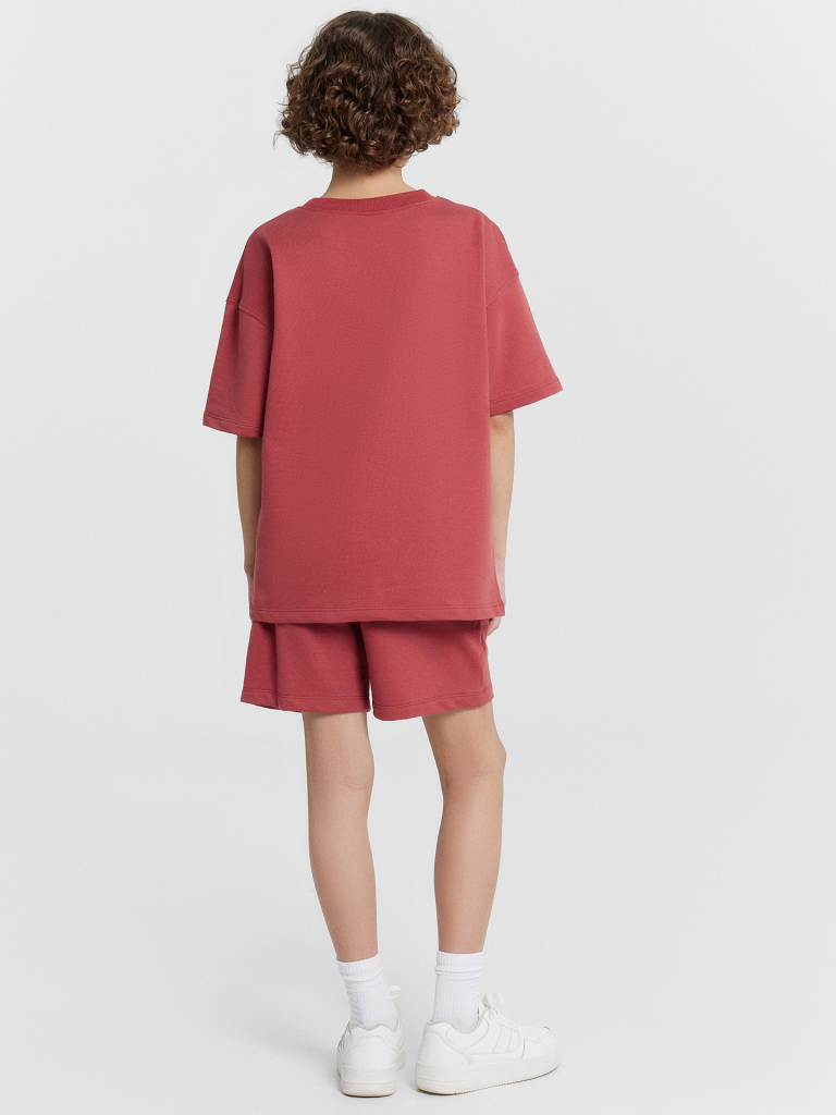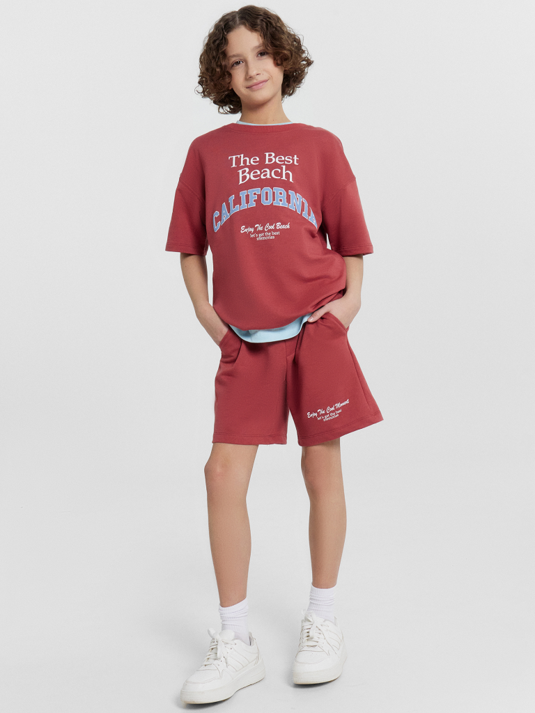 Стильный комплект для мальчиков. Состоит из футболки и шортов. Выполнен из высококачественного хлопка. Футболка прямого свободного силуэта, длиной до середины бедер, с круглой горловиной и короткими рукавами. Шорты длиной до колен или чуть выше, свободные, с боковыми карманами. В пояс из рибаны вставлен регулировочный шнур. Отличный вариант для повседневной носки, прогулок и путешествий. Широкий размерный ряд. Рекомендуем!
