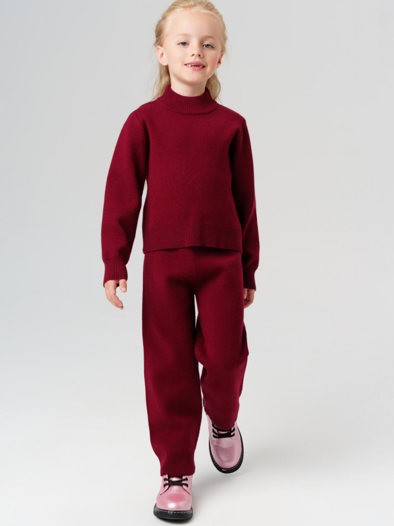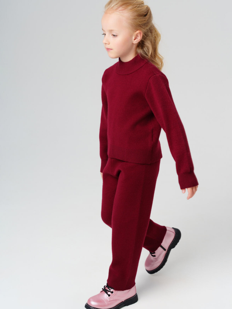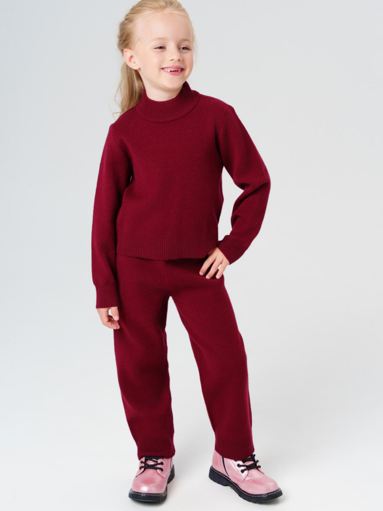 > Комплект трикотажный для девочек: джемпер, брюки бордовый