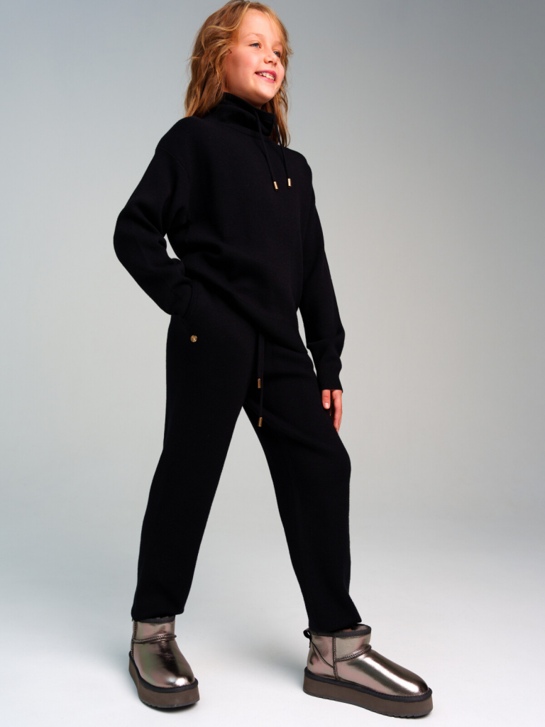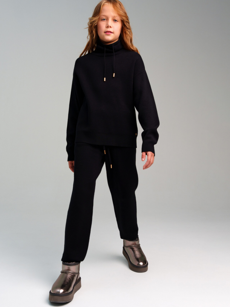 Костюм для девочки подростка: джемпер, брюки. Свитер с высоким содержанием вискозы. Штаны на резинке со шнурком. Модель из капсульной коллекции BLACK CHIC (БЛЭК ШИК). Соберите полный образ в едином стиле!