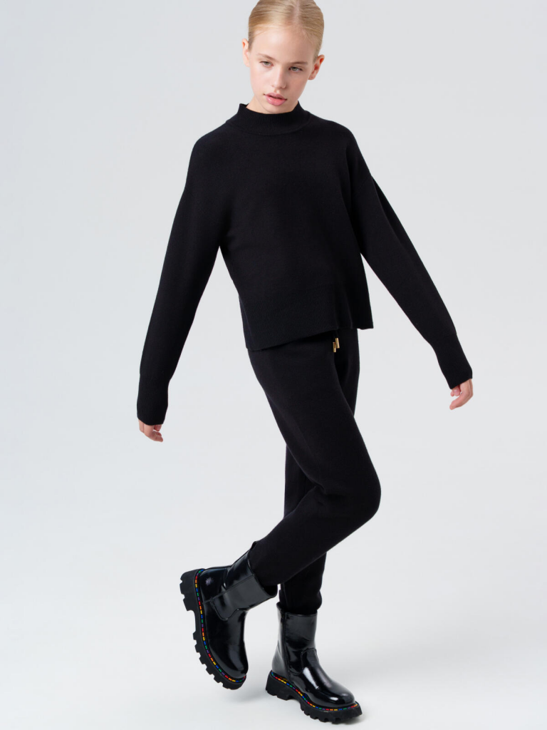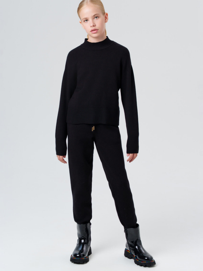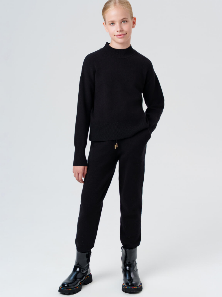 Комплект трикотажный для девочек: джемпер, брюки черный