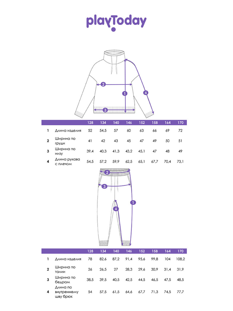 | Рост, см | 98 | 104 | 110 | 116 | 122 | 128 | 134 | 140 | 146 | 152 | 158 | 164 | 170 |