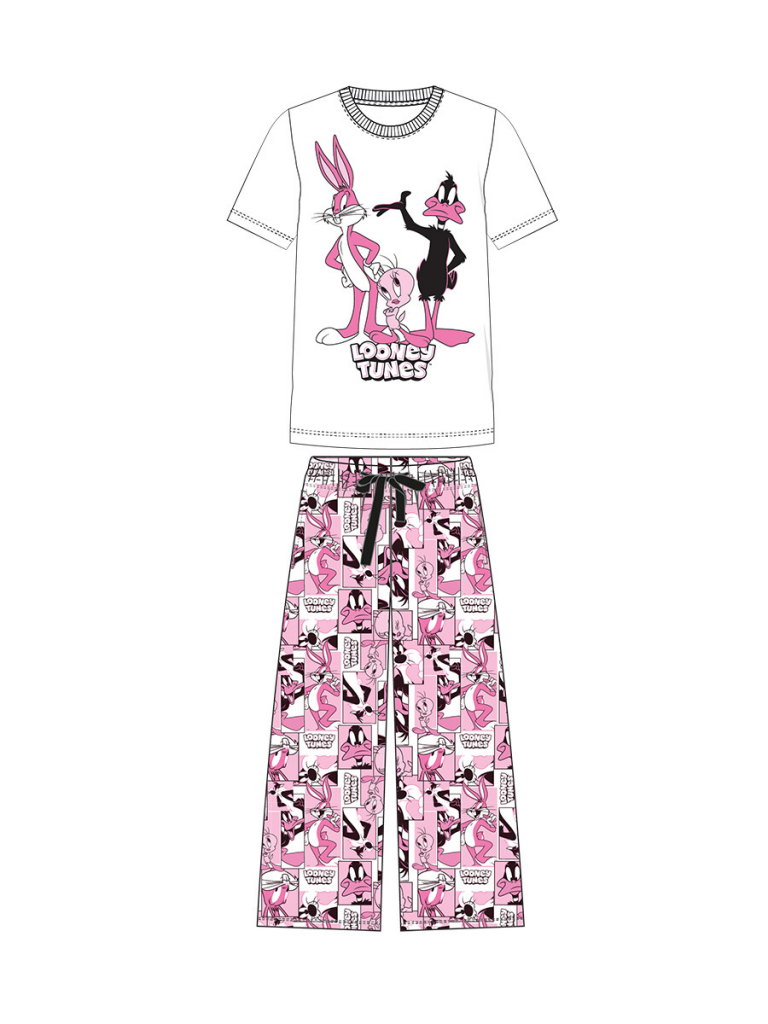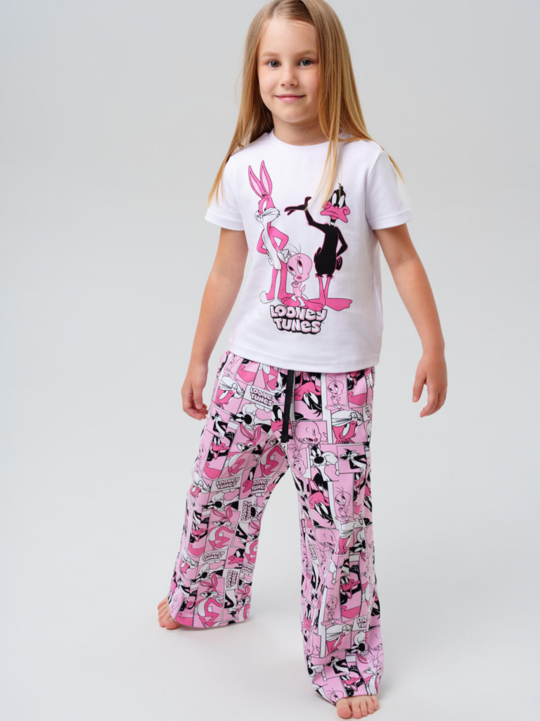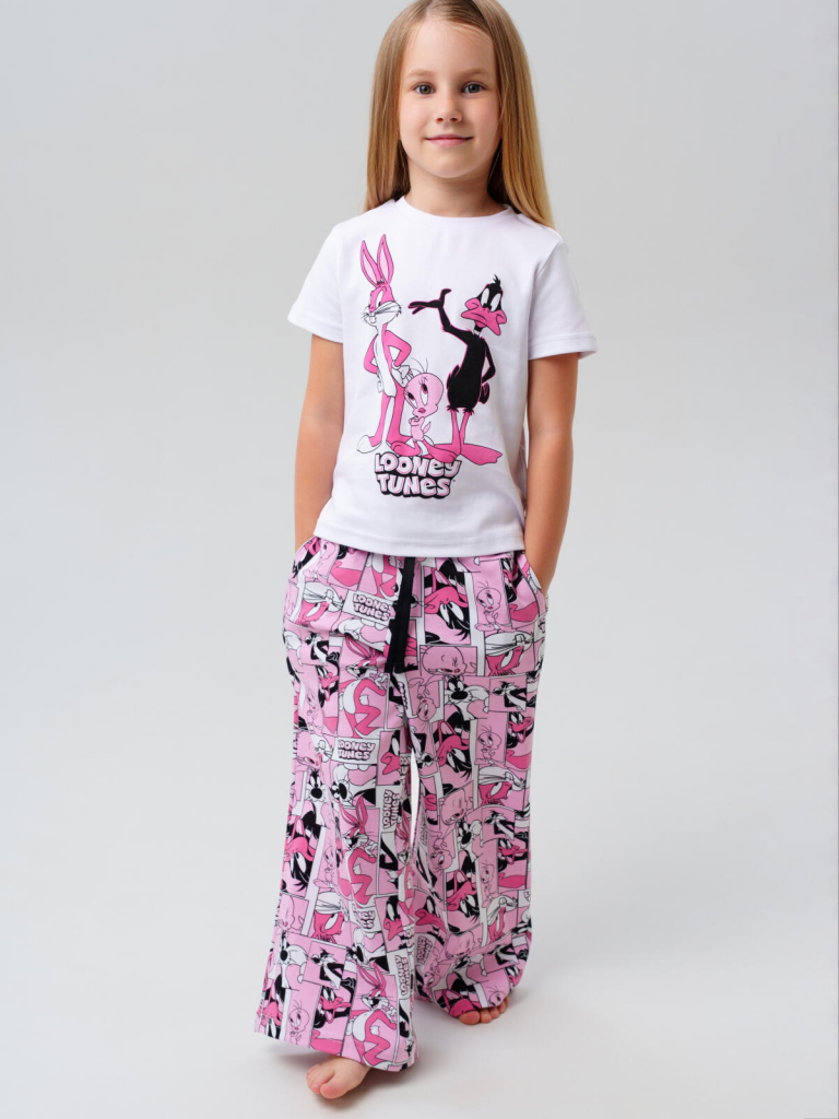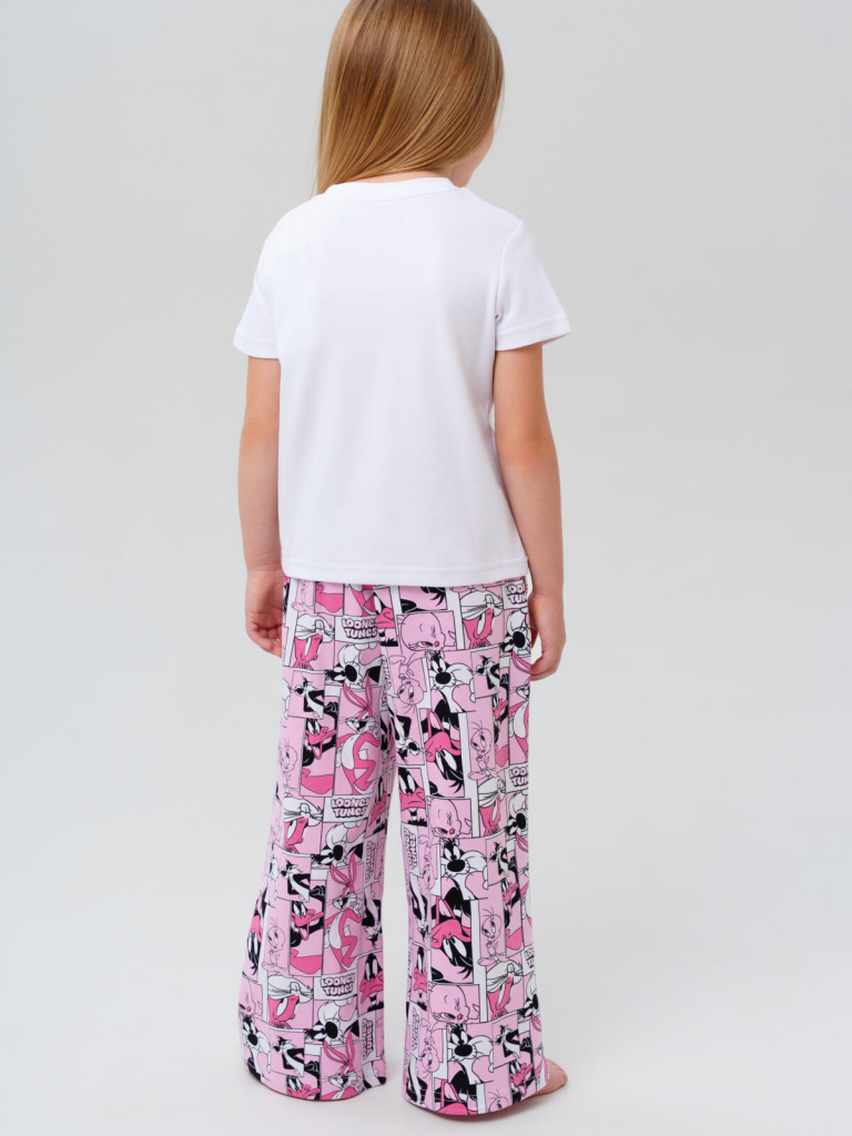 Комплект трикотажный для девочек: фуфайка (футболка), брюки белый,розовый