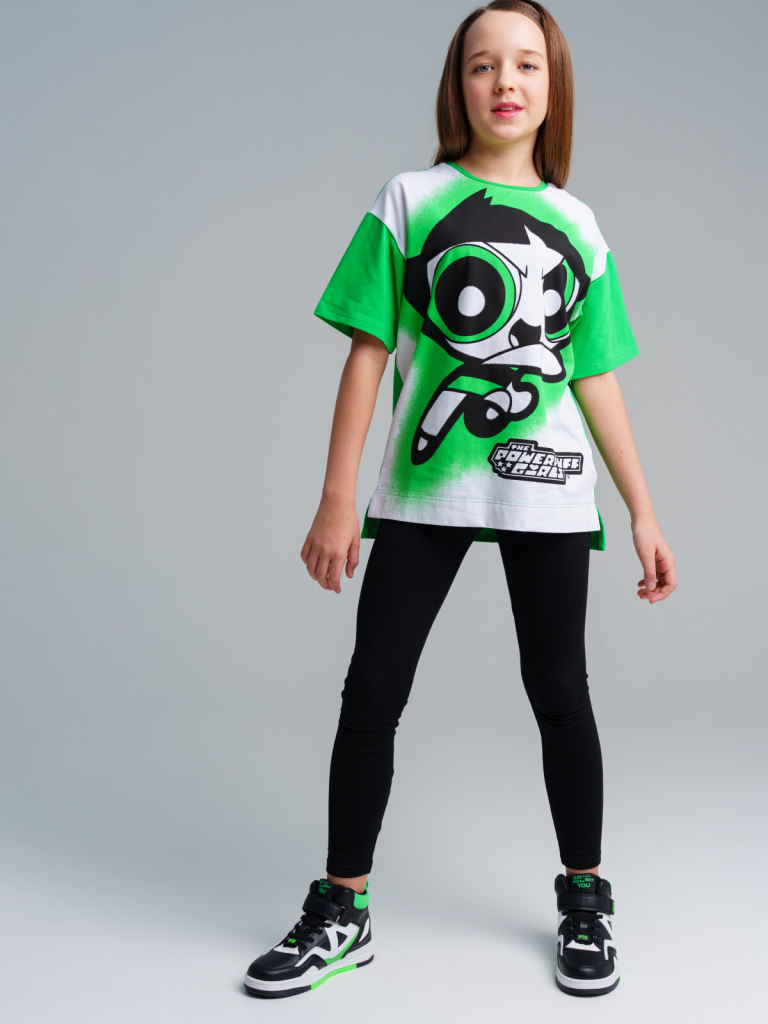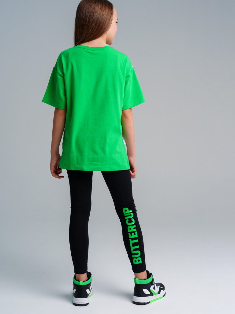 > Комплект трикотажный для девочек: фуфайка (футболка), брюки (легинсы) черный,зеленый,белый