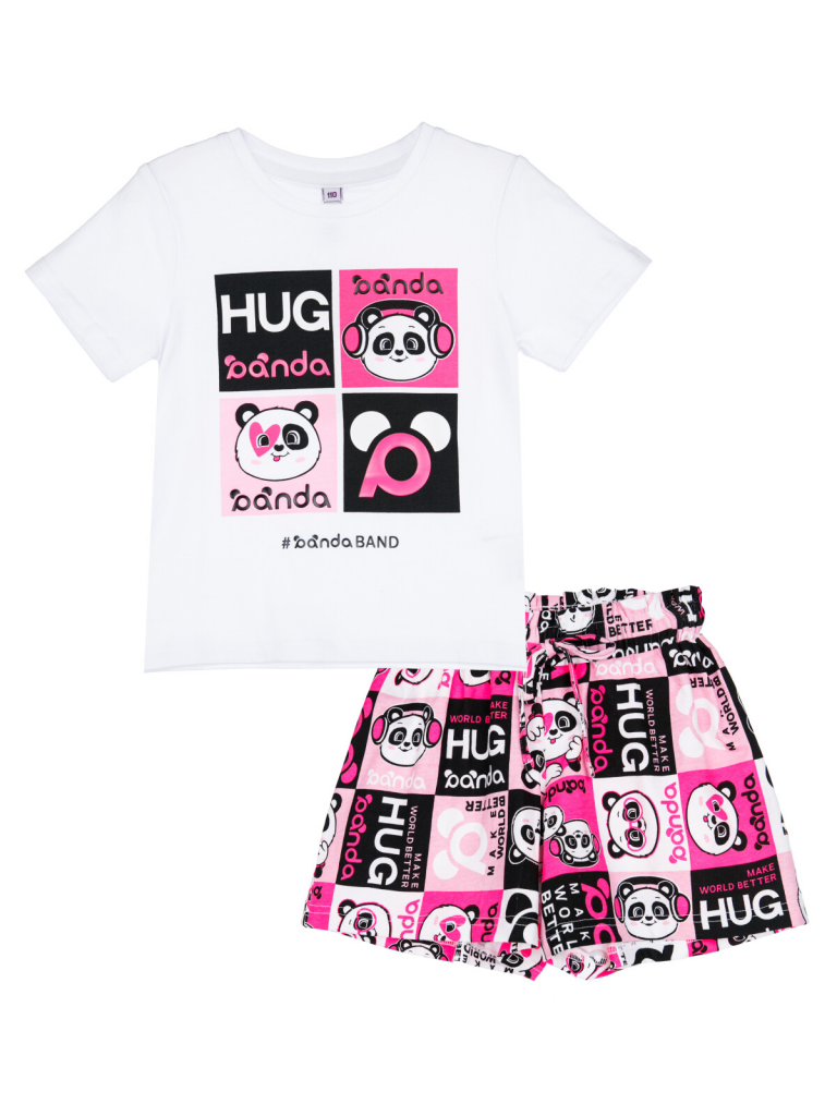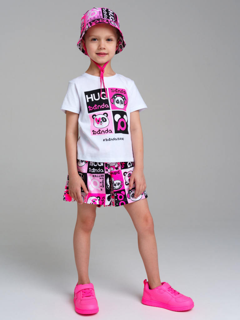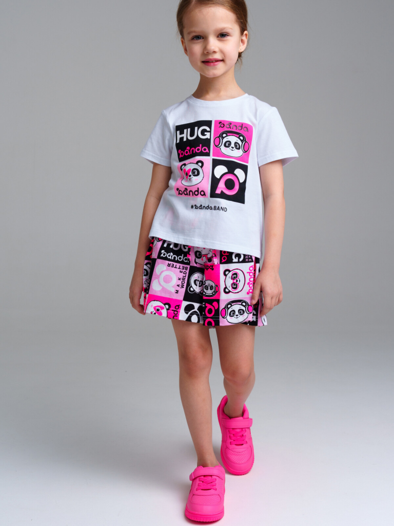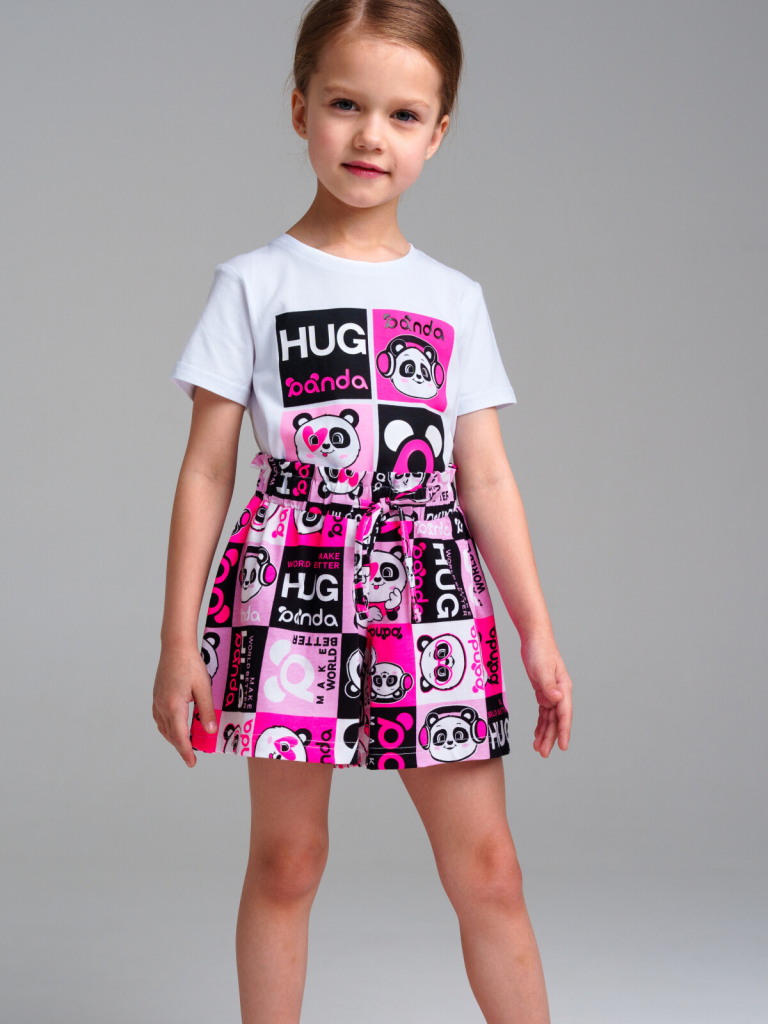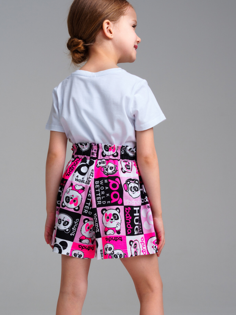 Комплект трикотажный для девочек: фуфайка (футболка), юбка-шорты разноцветный