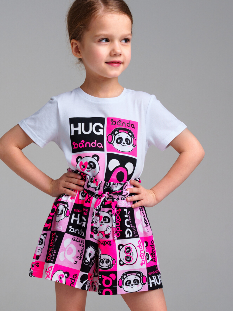 Комплект: футболка и юбка-шорты из качественного эластичного и приятного на ощупь трикотажа. Оптимальная посадка: шорты не сползают при движении. Эластичный пояс со шнурком. Высокое содержание хлопка 95%. Благодаря наличию эластана в составе ткани изделие проще в уходе и держит форму.