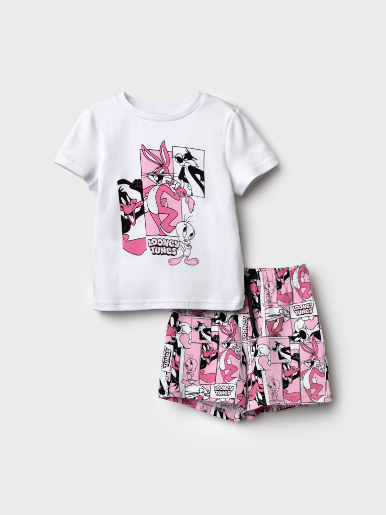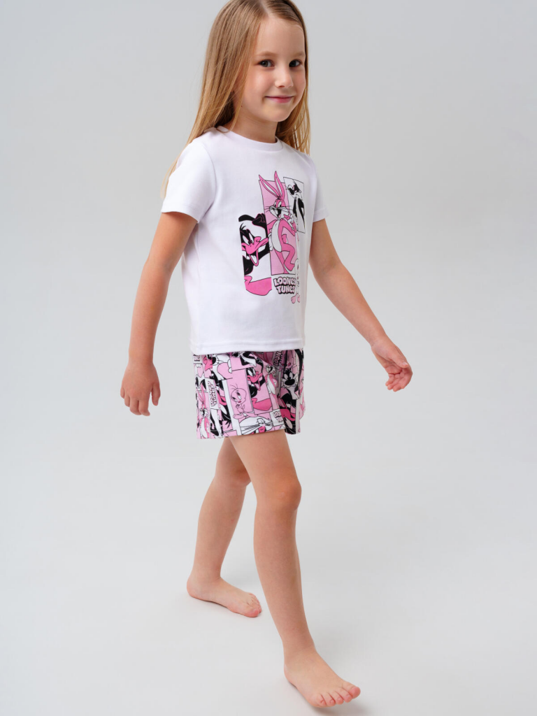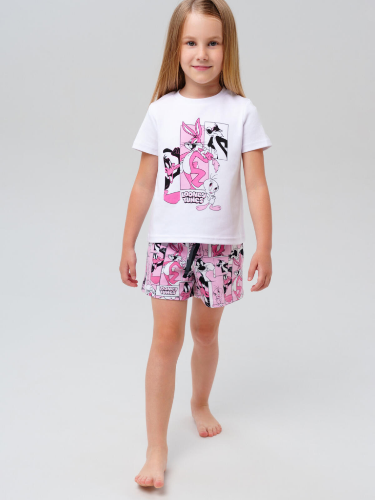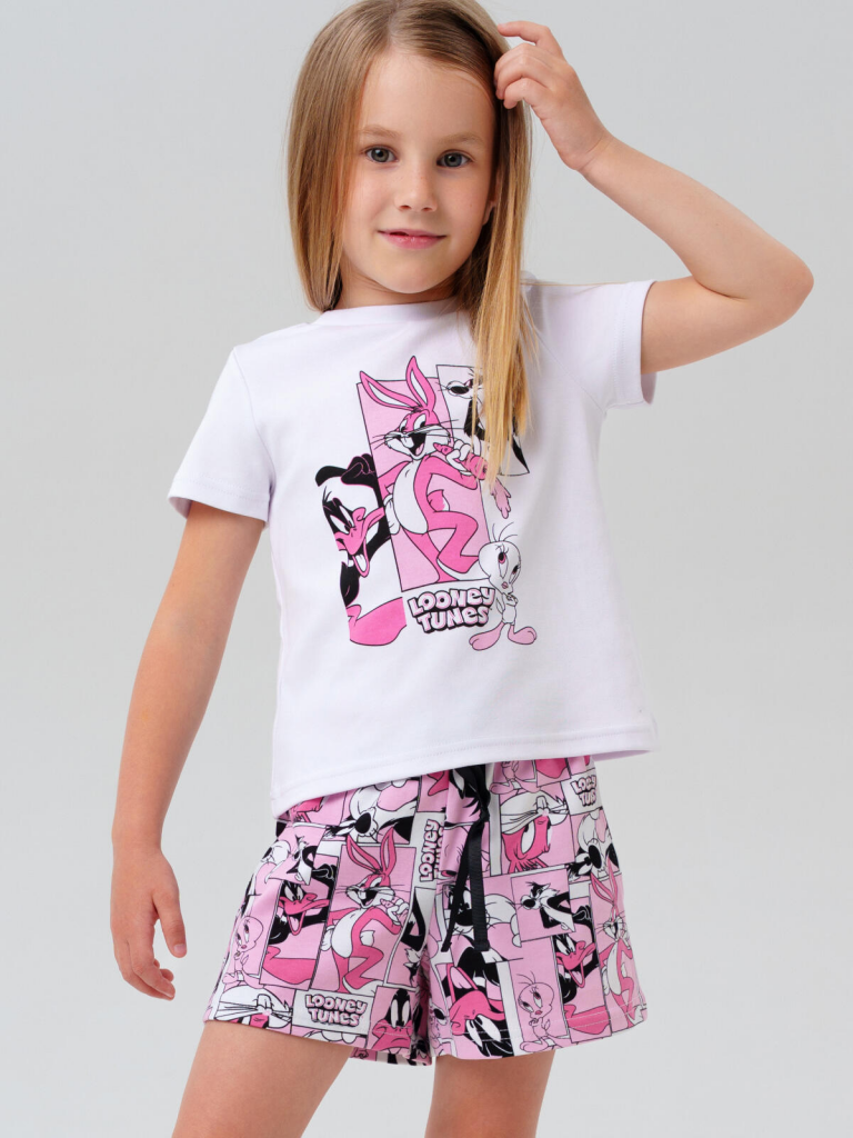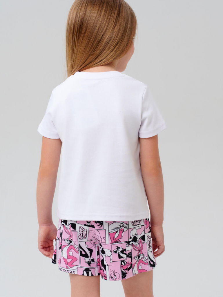 Комплект трикотажный для девочек: фуфайка (футболка), шорты белый,розовый