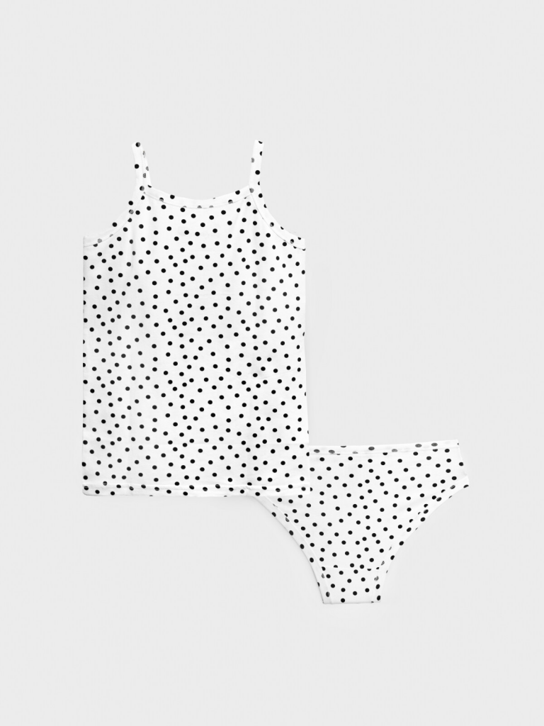 Комплект белья для девочки подростка. Комплект белья: майка и трусы-слипы. Майка на тонких нерегулируемых бретелях. Высокое содержание хлопка. Благодаря наличию эластана в составе ткани изделие проще в уходе и держит форму.