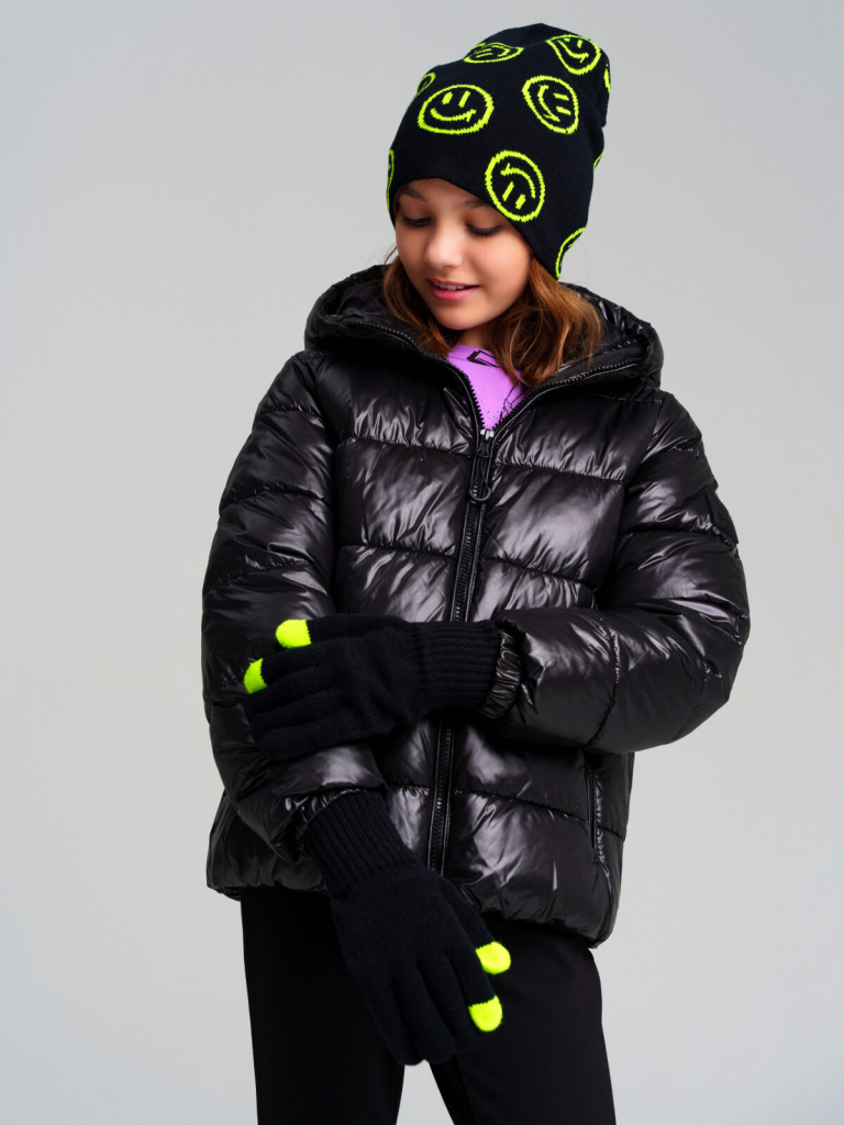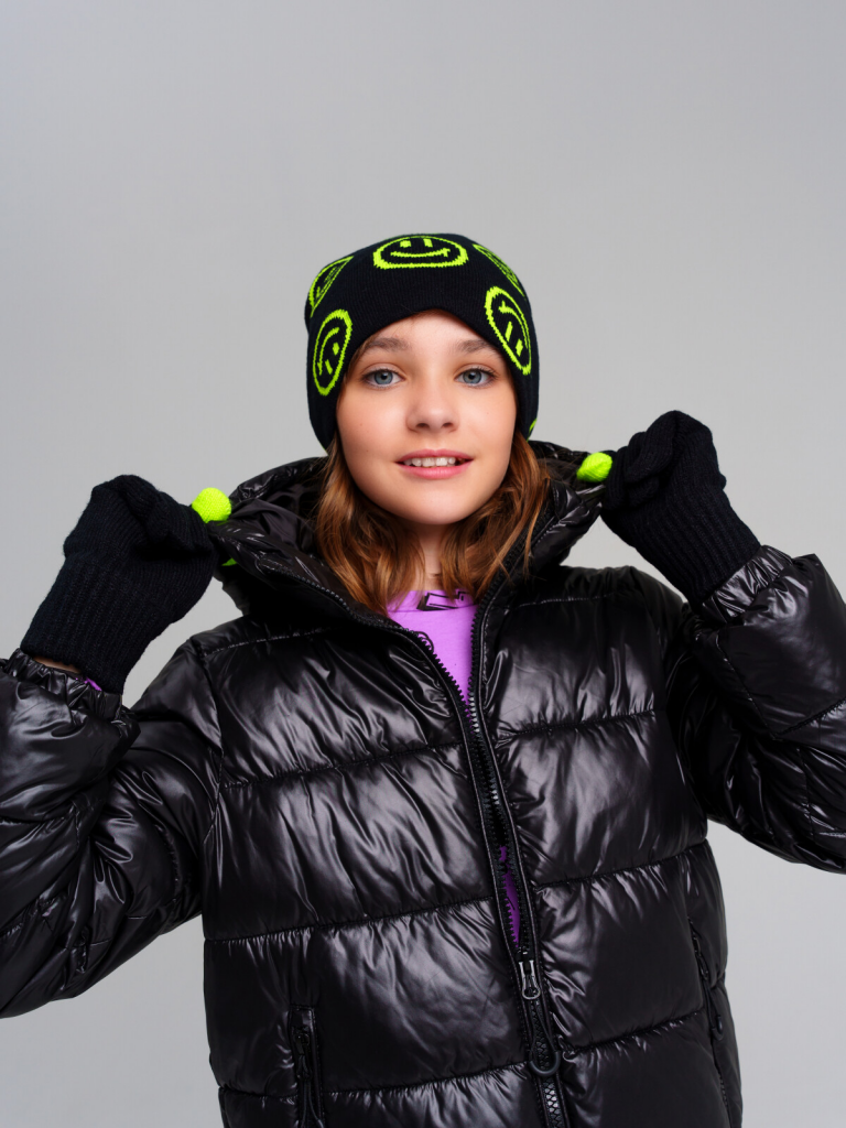 > Комплект трикотажный для девочек: шапка, перчатки черный