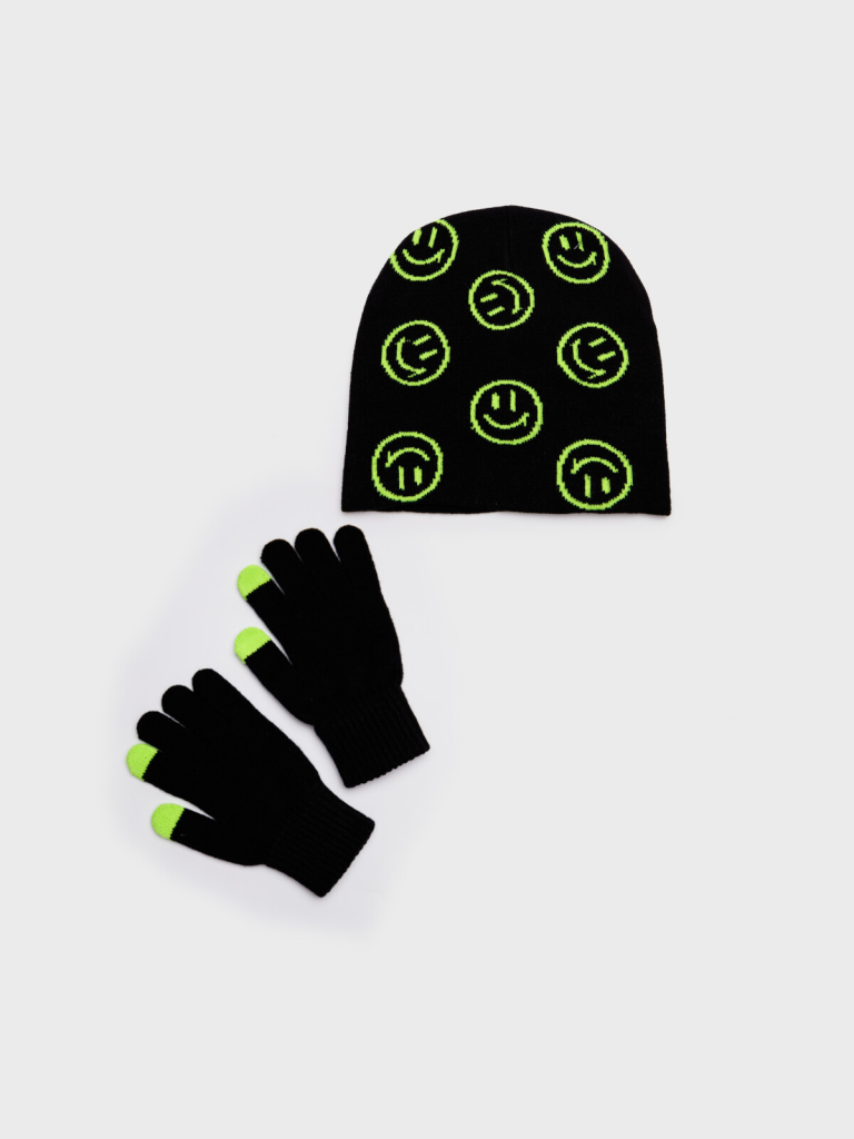 Комплект трикотажный для девочек: шапка, перчатки черный