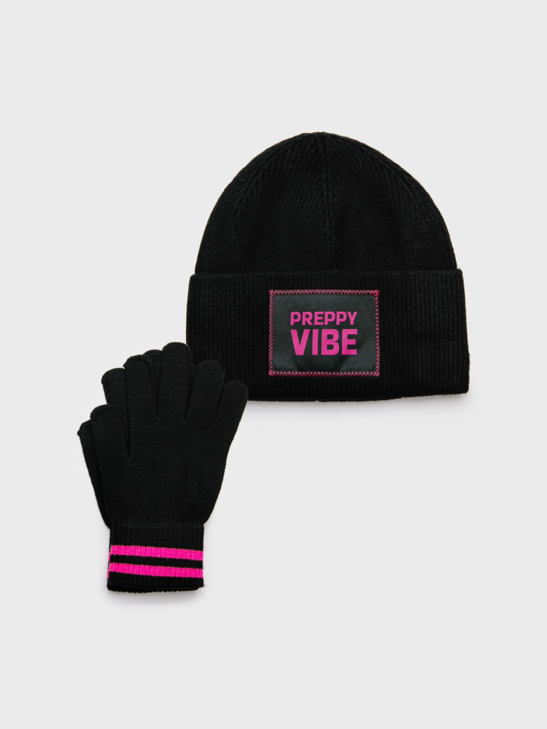 Комплект для девочки подростка. Модная шапка и перчатки из вискозы отлично подойдут на холодное время года ( осень, зима). Модель из капсульной коллекции PREPPY VIBE (ПРЕППИ ВАЙБ). Соберите полный образ в едином стиле!