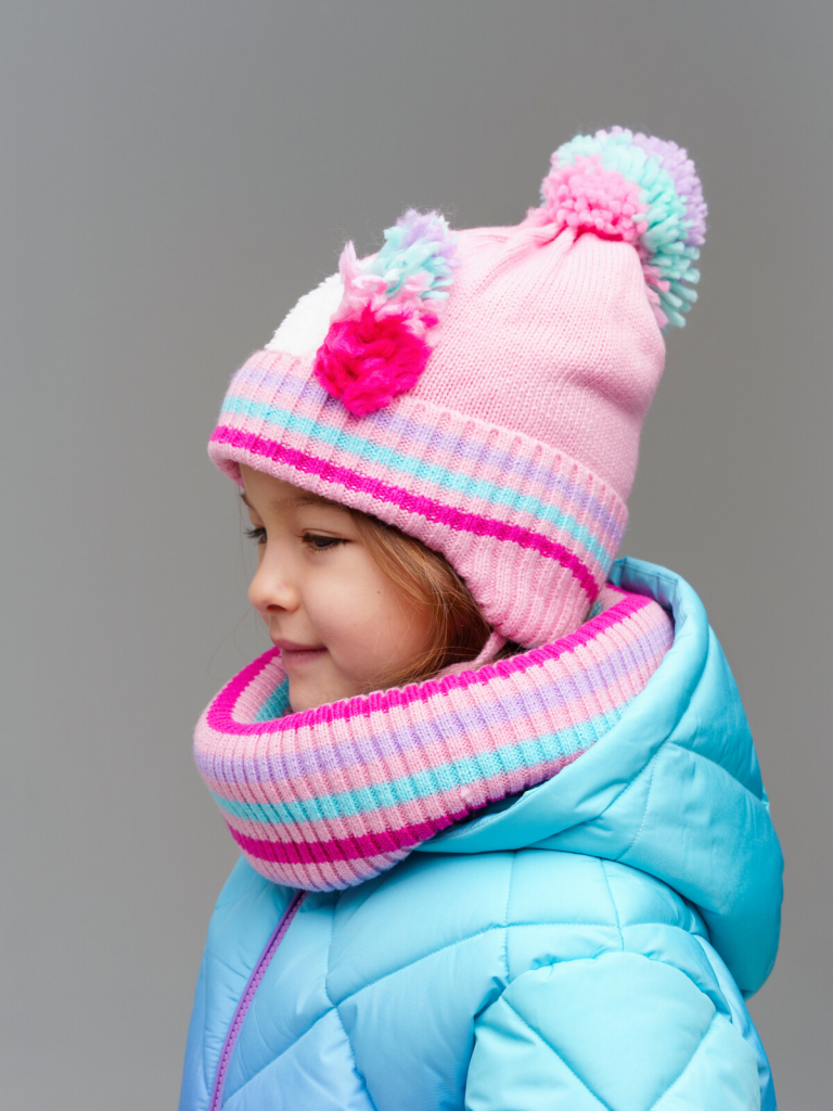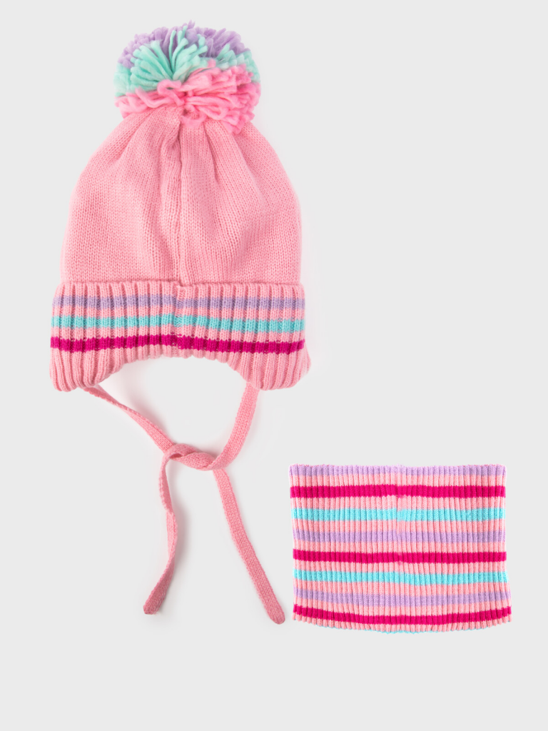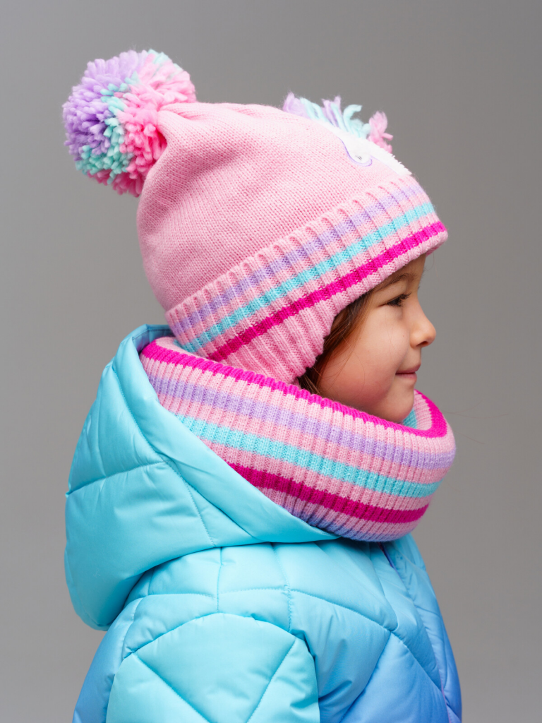 Комплект трикотажный для девочек: шапка, снуд разноцветный
