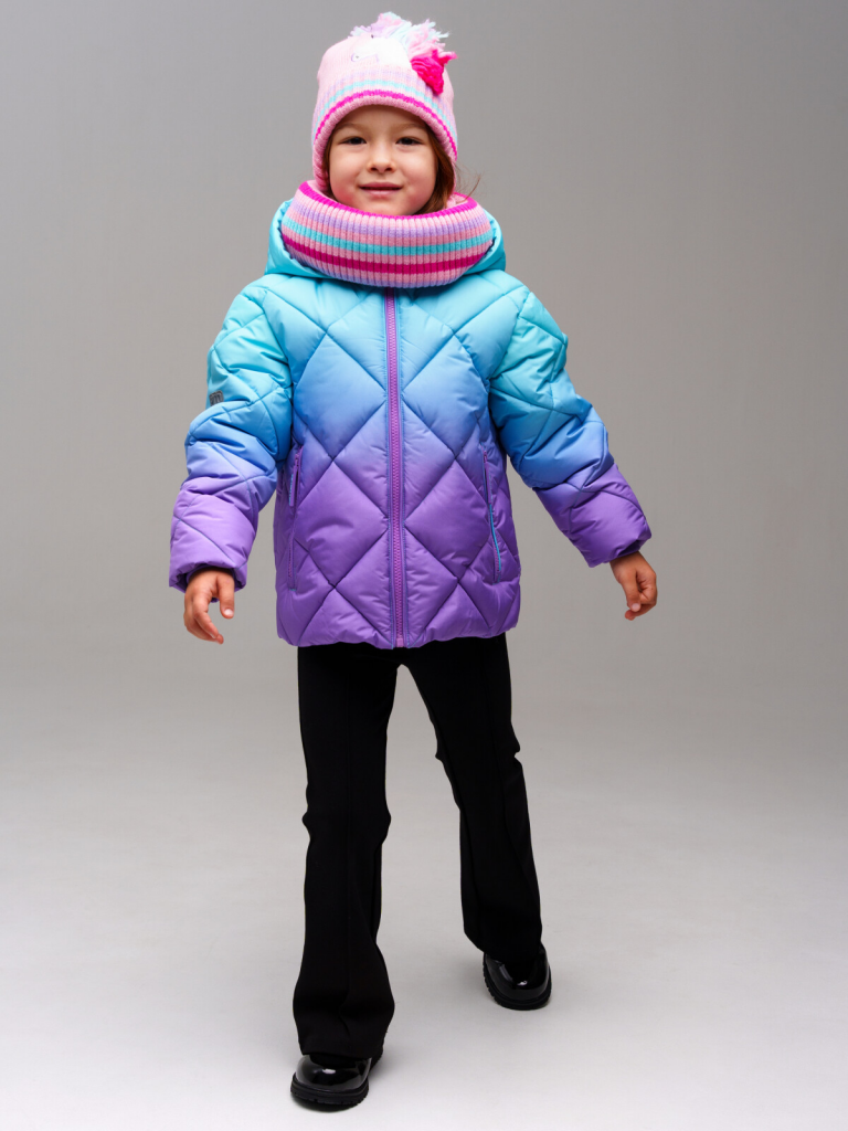 > Комплект трикотажный для девочек: шапка, снуд разноцветный