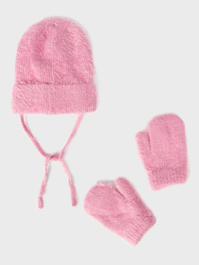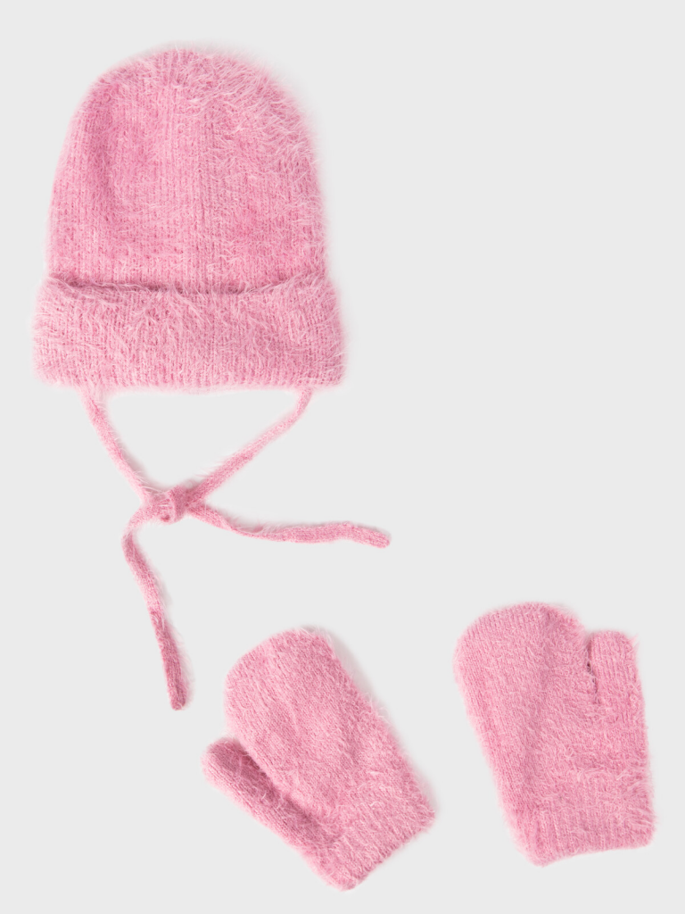 Комплект трикотажный для девочек: шапка, варежки светло-розовый
