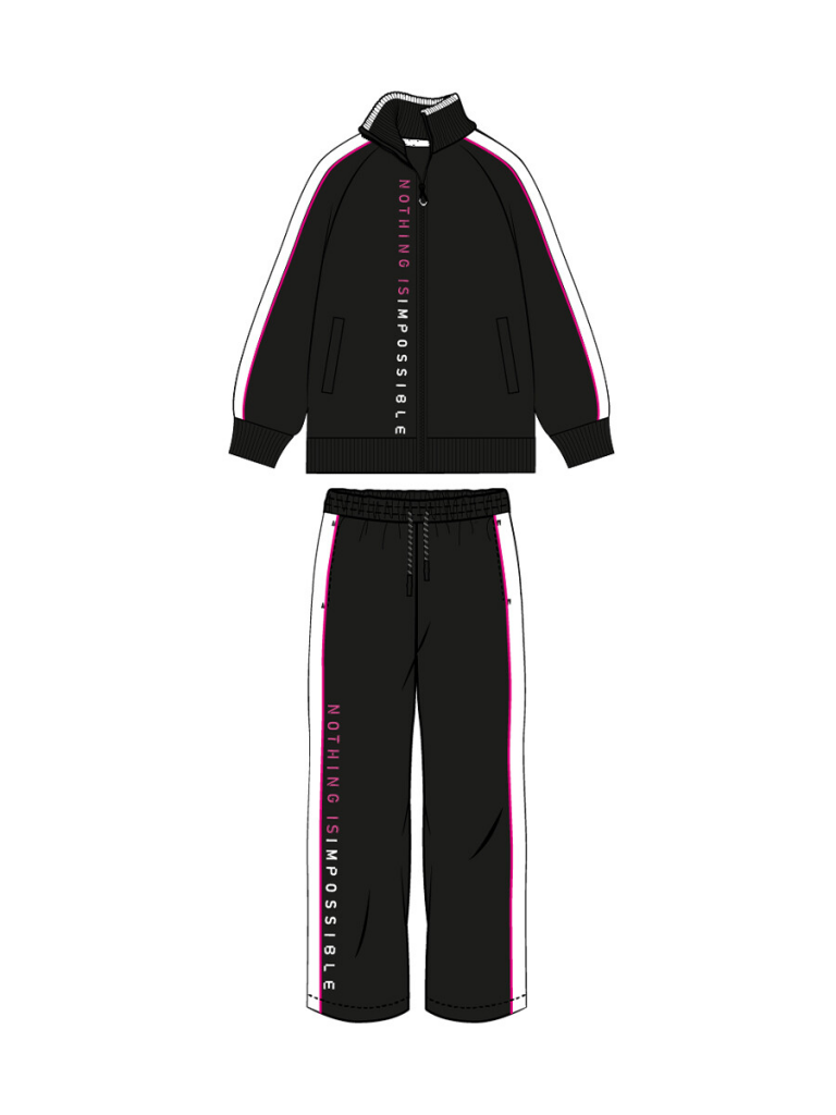 > Комплект трикотажный для девочек: толстовка, брюки черный,белый