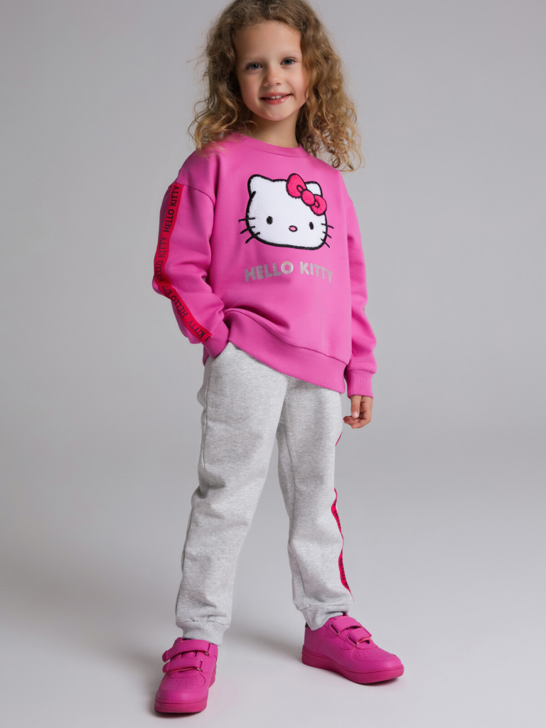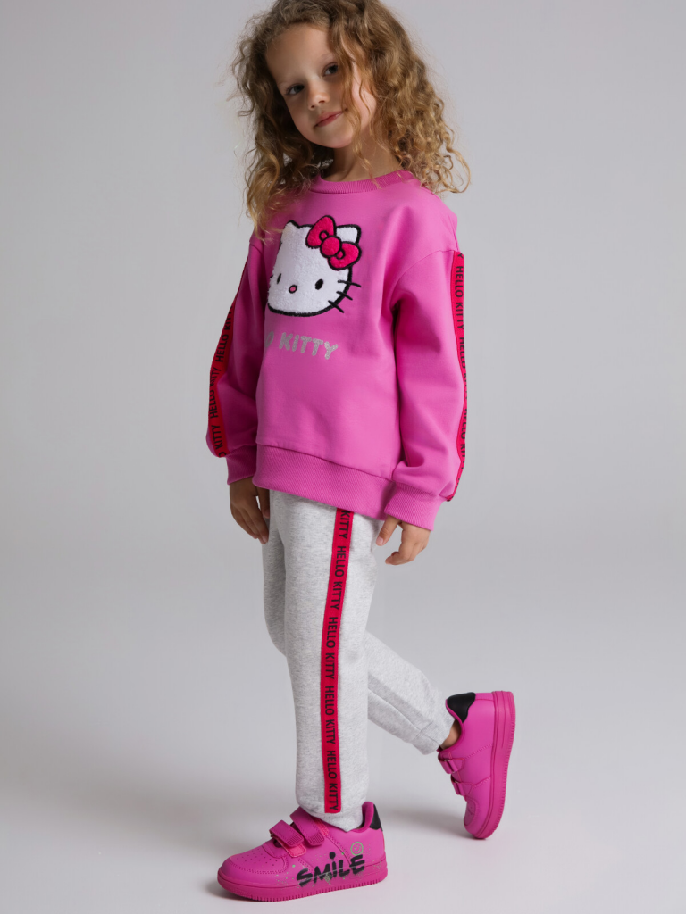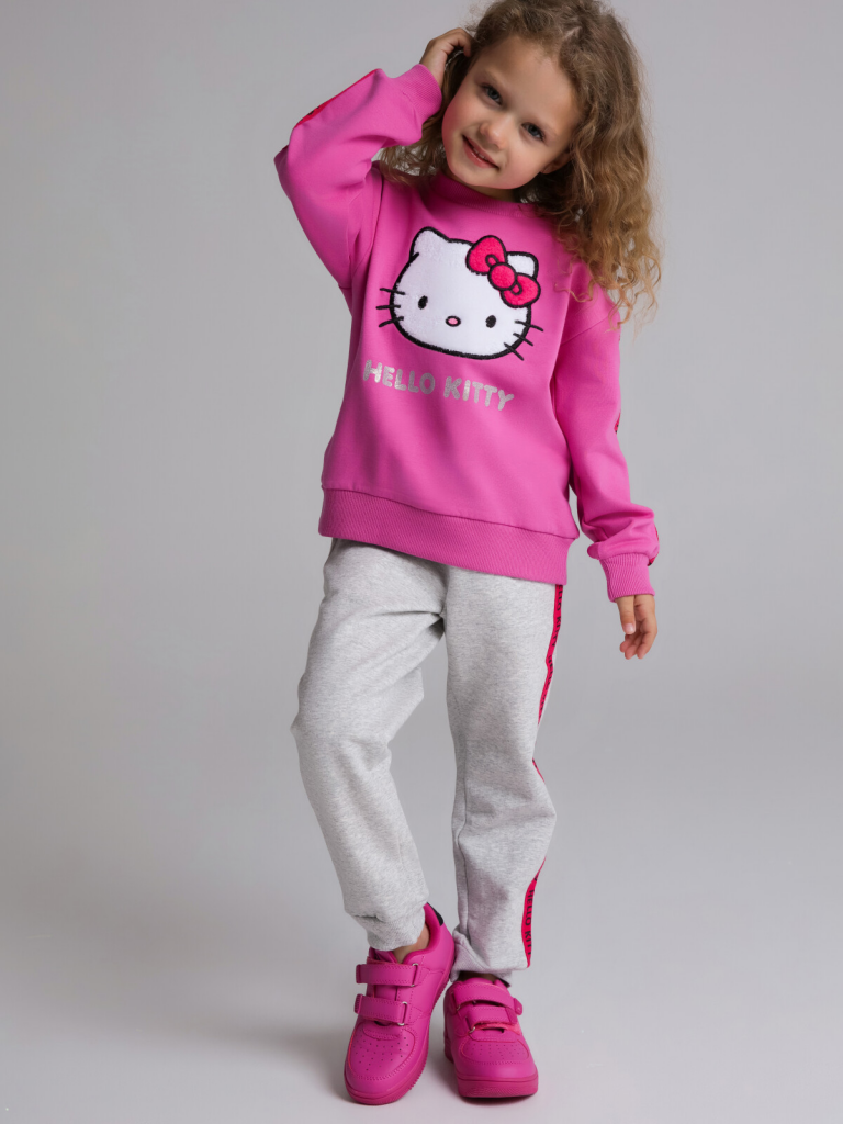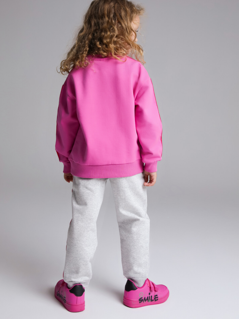 > Комплект трикотажный для девочек: толстовка, брюки розовый,серый меланж