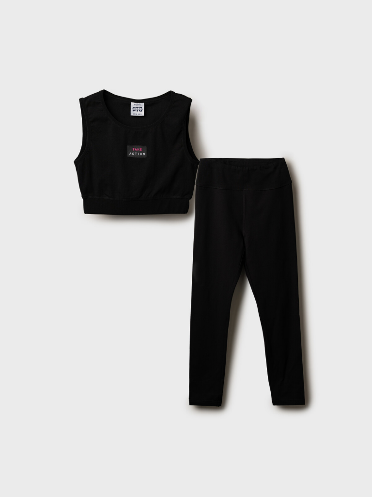 Комплект трикотажный для девочек: топ, брюки (легинсы) черный