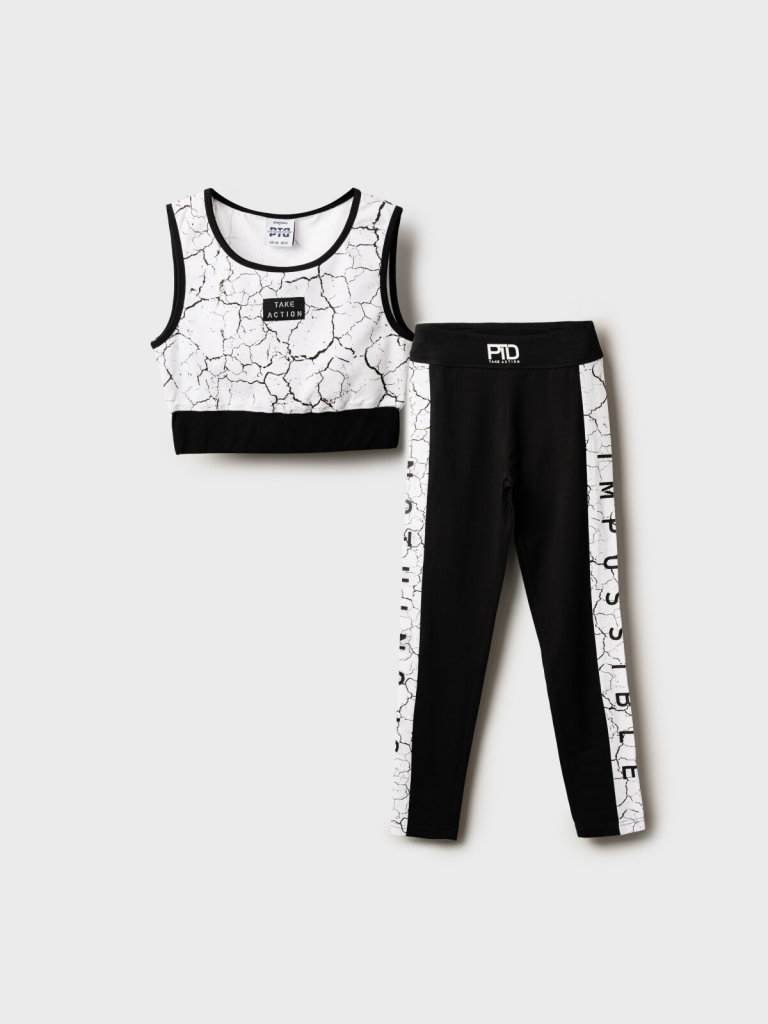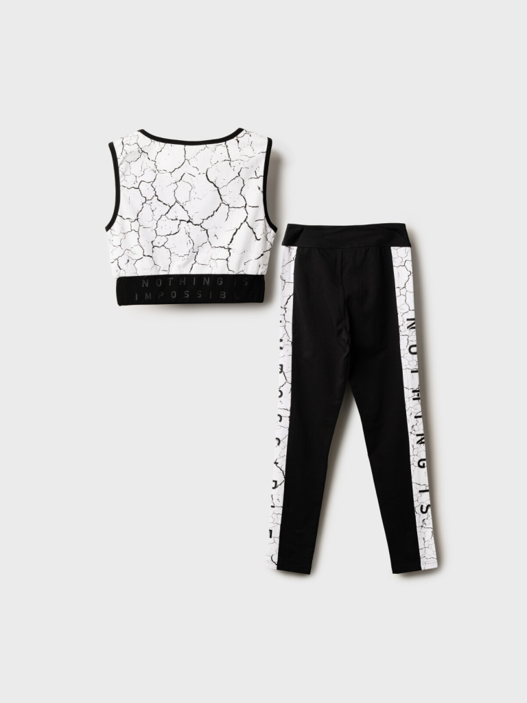 Комплект трикотажный для девочек: топ, брюки (легинсы) черный,белый