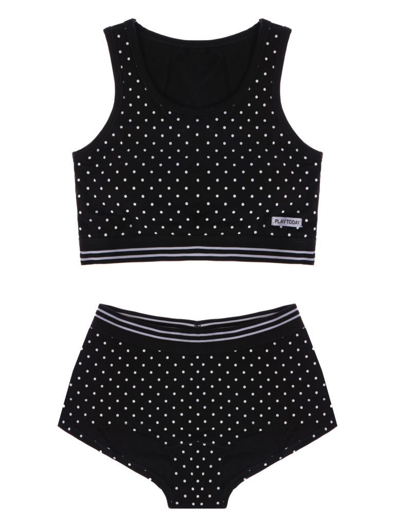 > Комплект трикотажный для девочек: топ, трусы черный,белый