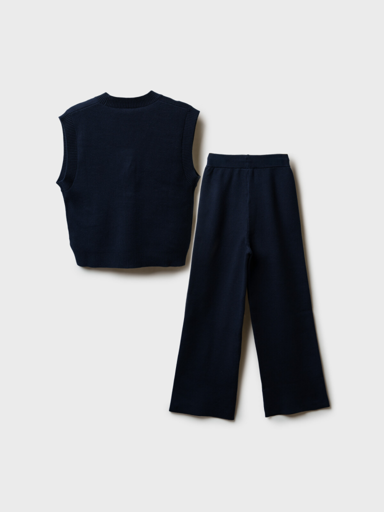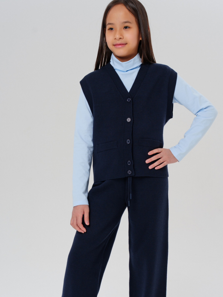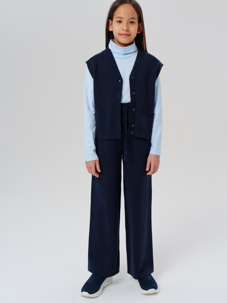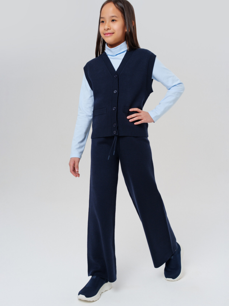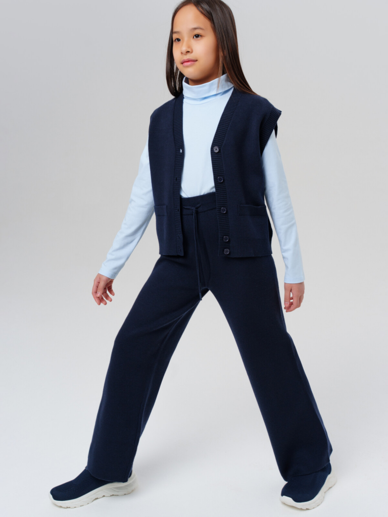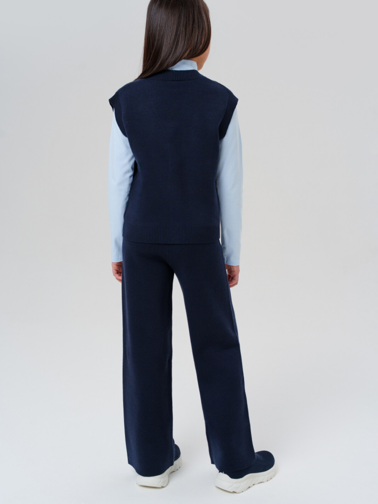 Комплект трикотажный для девочек: жилет, брюки тёмно-синий