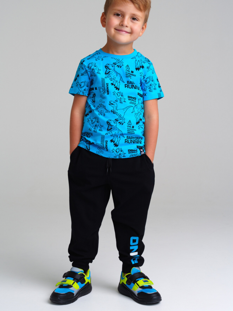 > Комплект трикотажный для мальчиков: фуфайка (футболка), брюки черный,синий