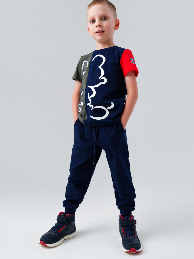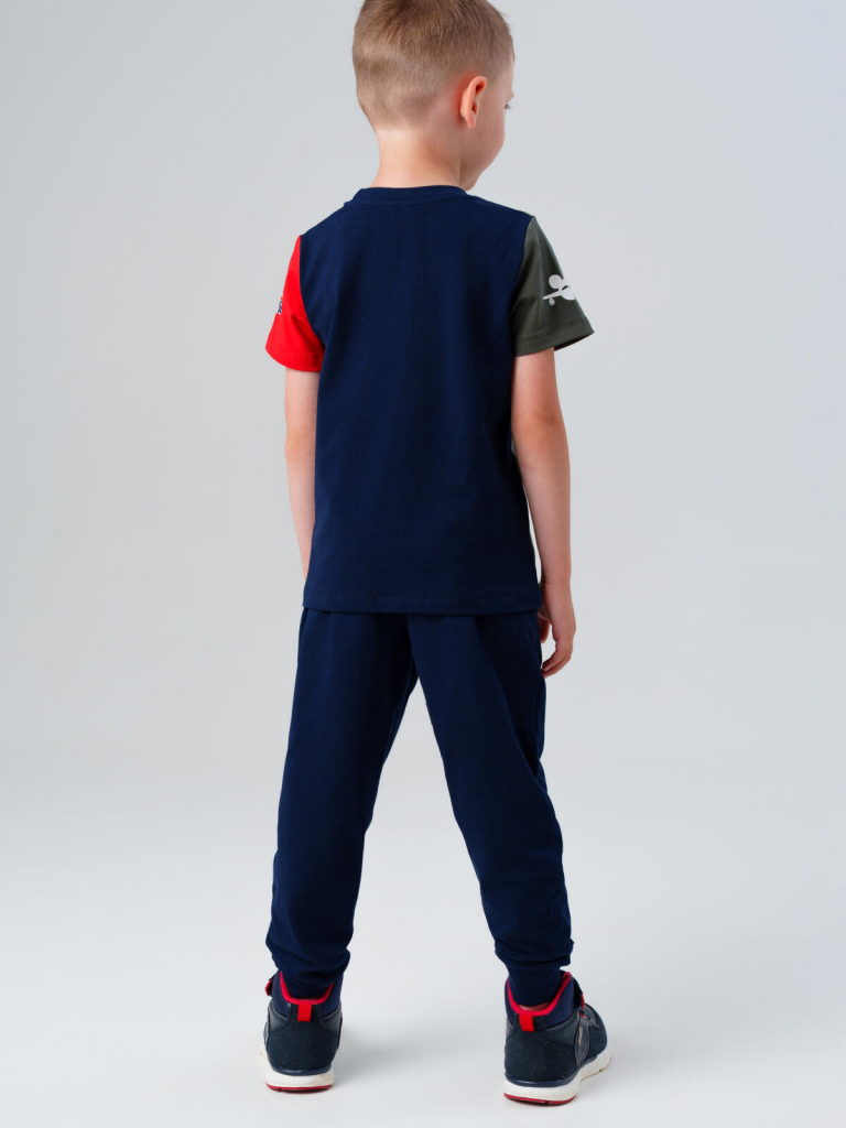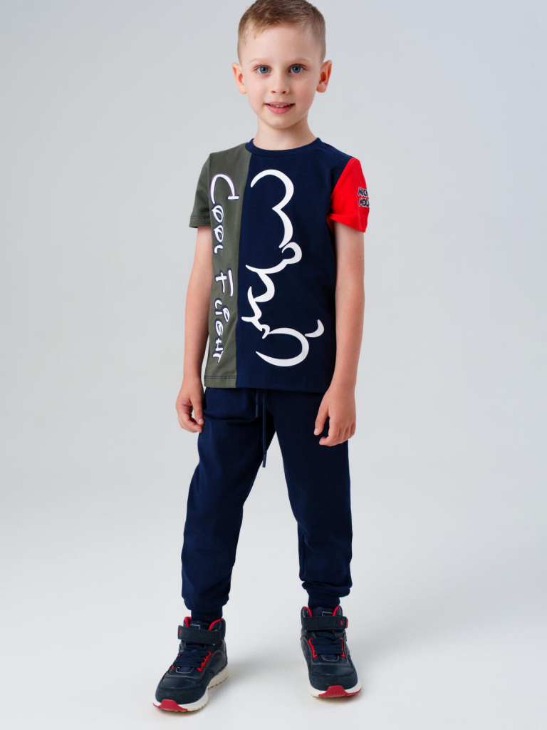 > Комплект трикотажный для мальчиков: фуфайка (футболка), брюки тёмно-синий,хаки,красный