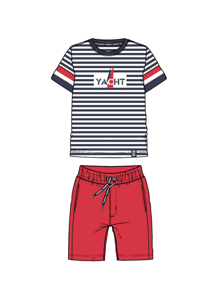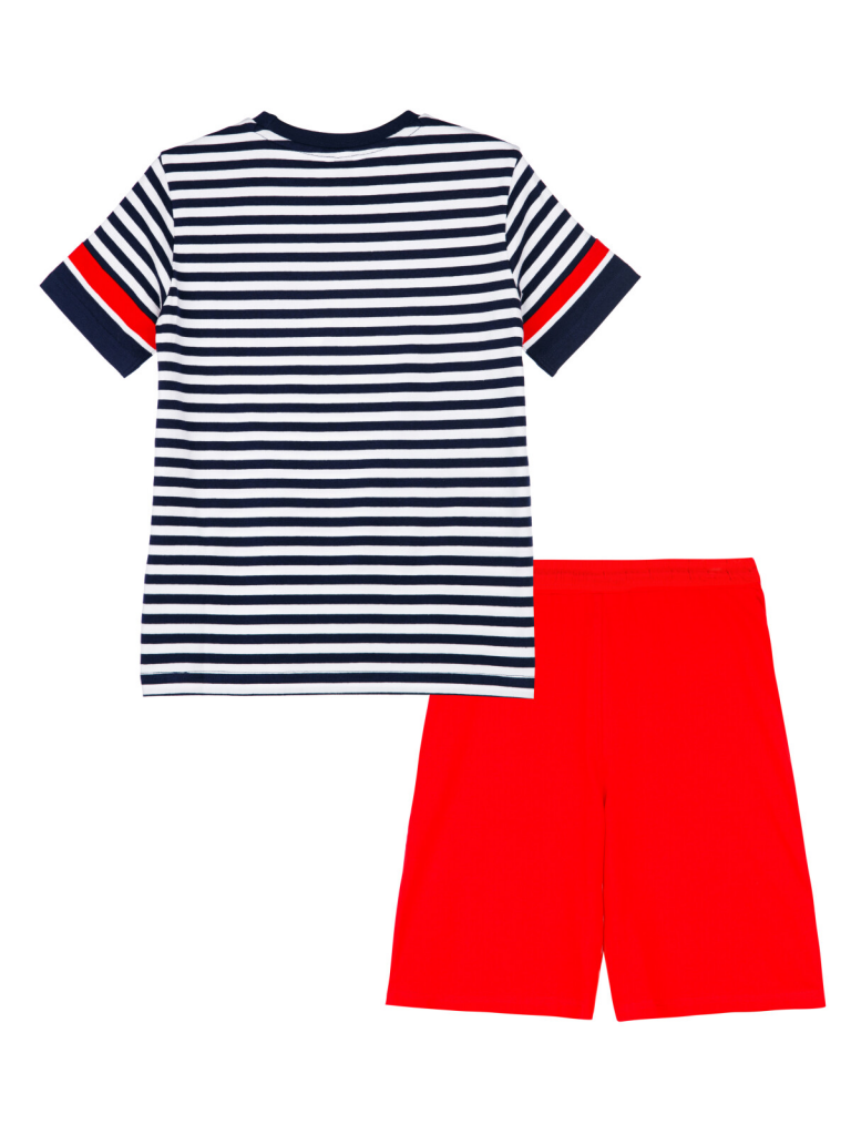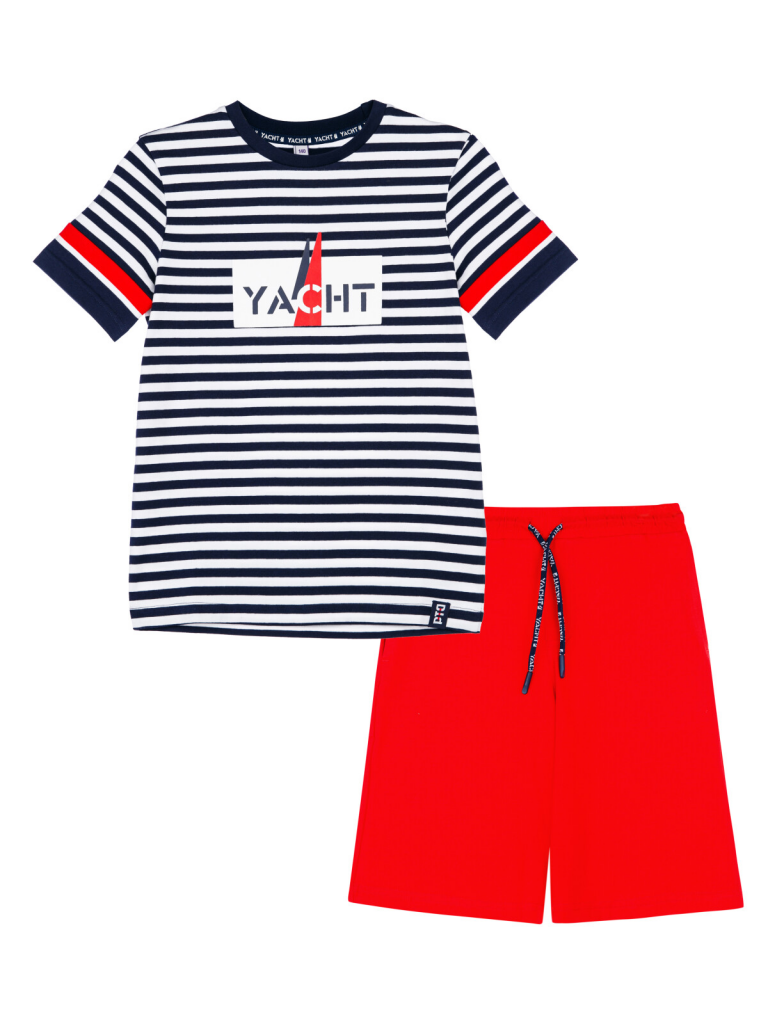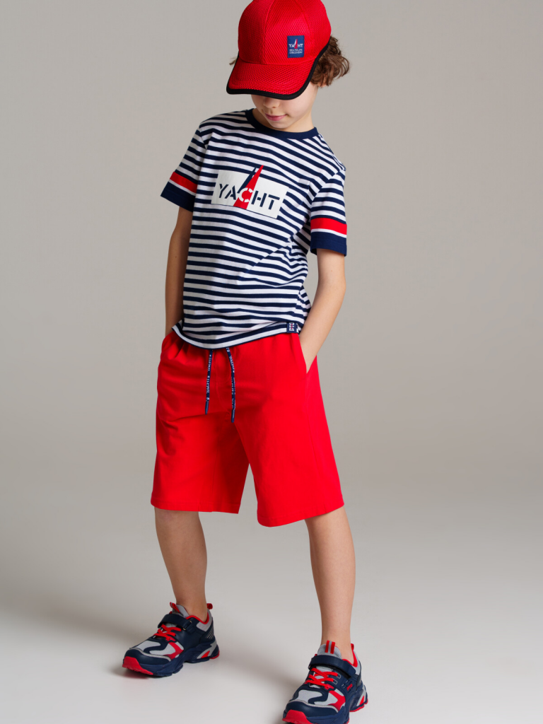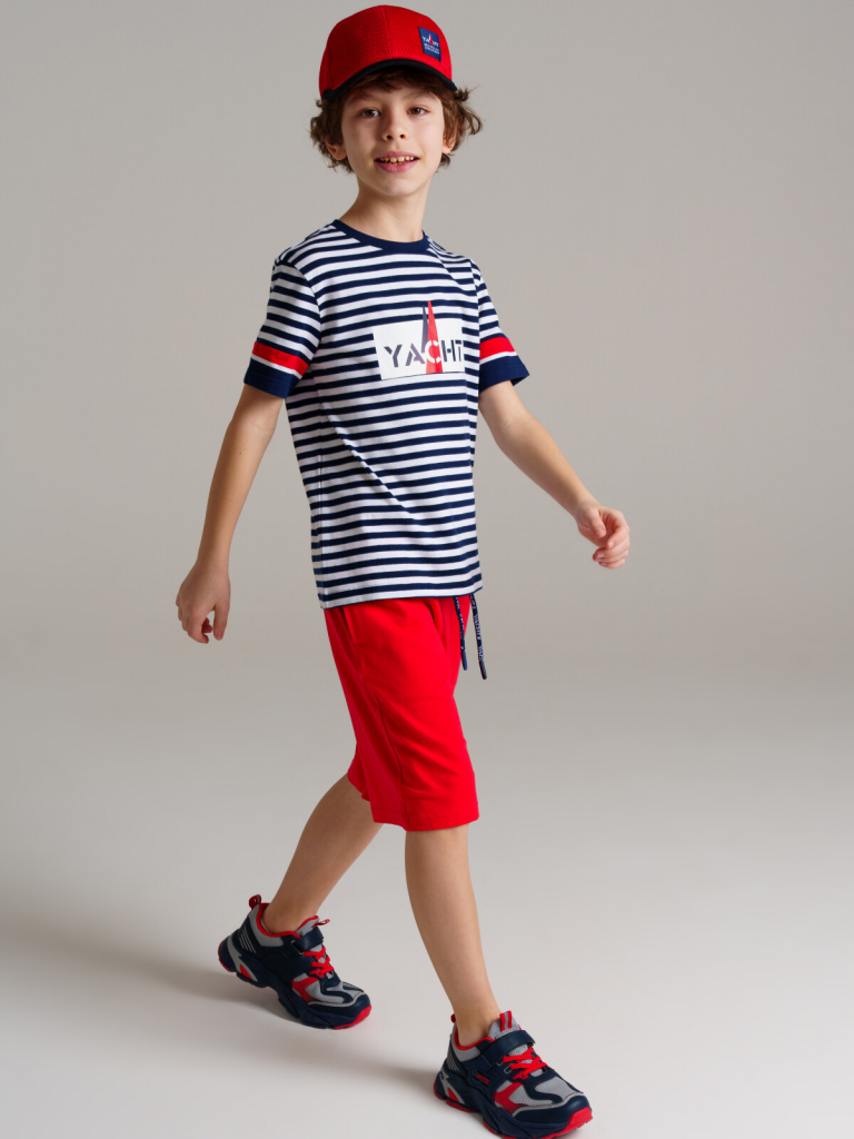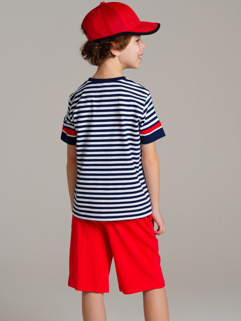 Комплект трикотажный для мальчиков: фуфайка (футболка), шорты белый,красный,тёмно-синий