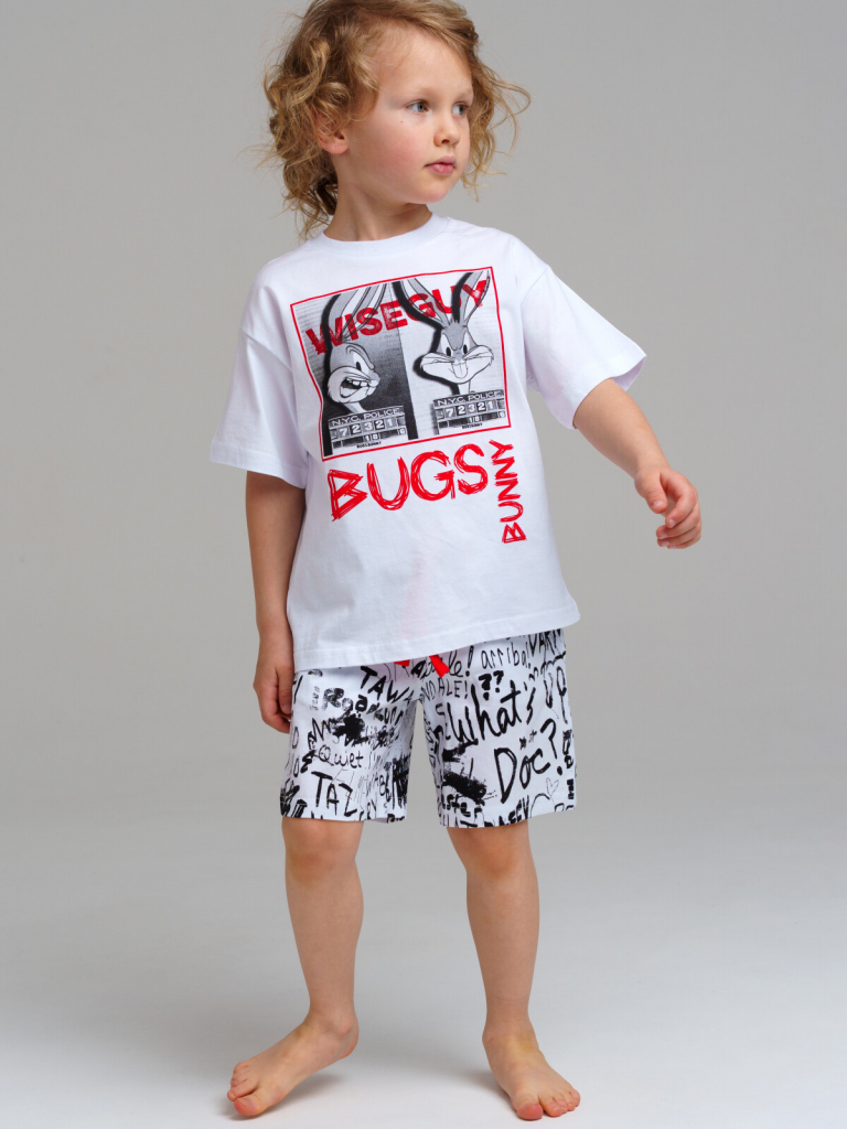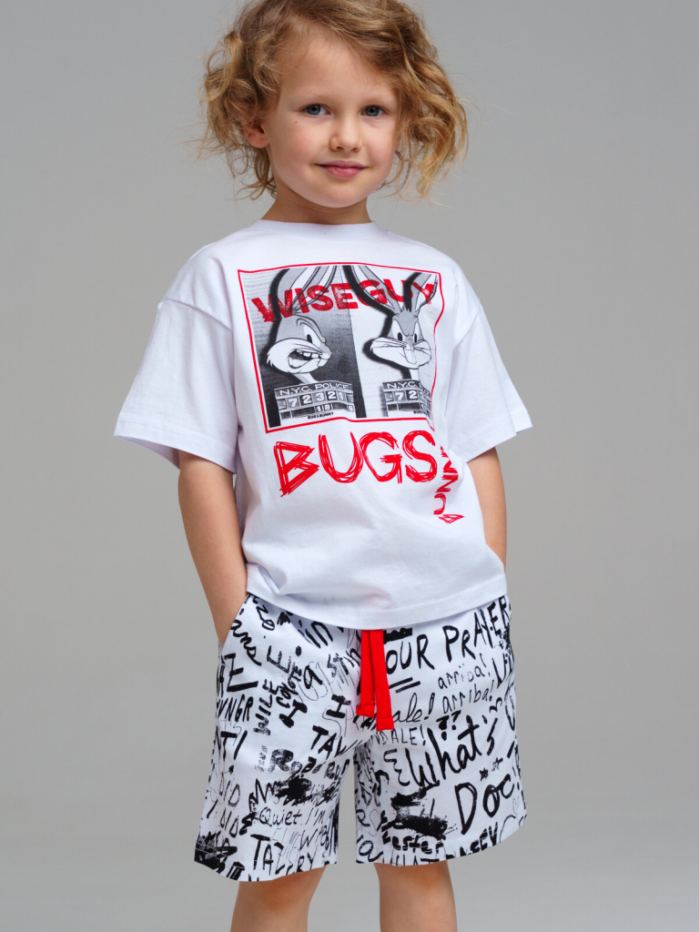 > Комплект трикотажный для мальчиков: фуфайка (футболка), шорты белый,разноцветный