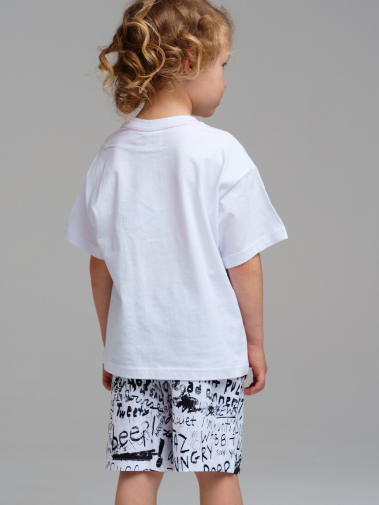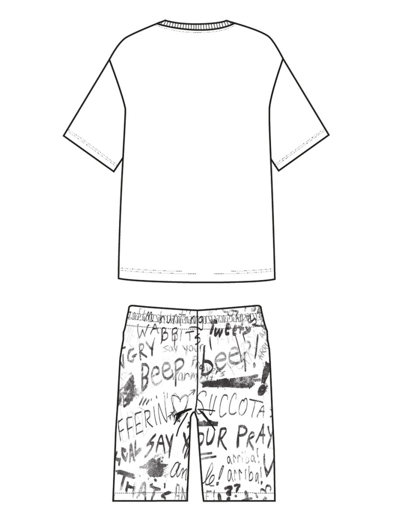 Пижама: футболка, шорты из качественного и приятного на ощупь трикотажа джерси. 100% хлопок. Футболка oversize. Шорты comfort fit с эластичным поясом со шнурком. Карманы в боковых швах.