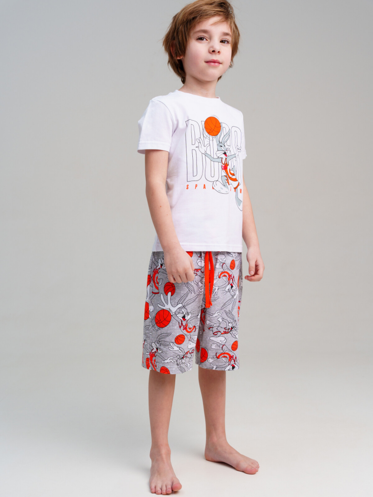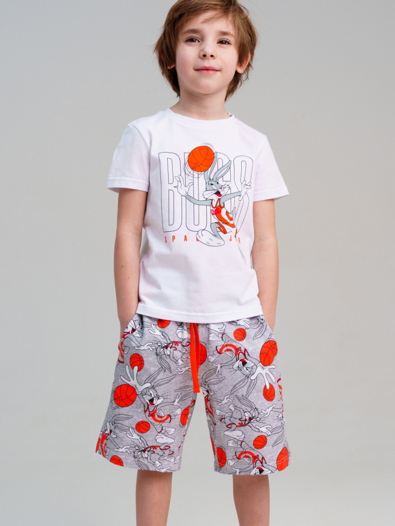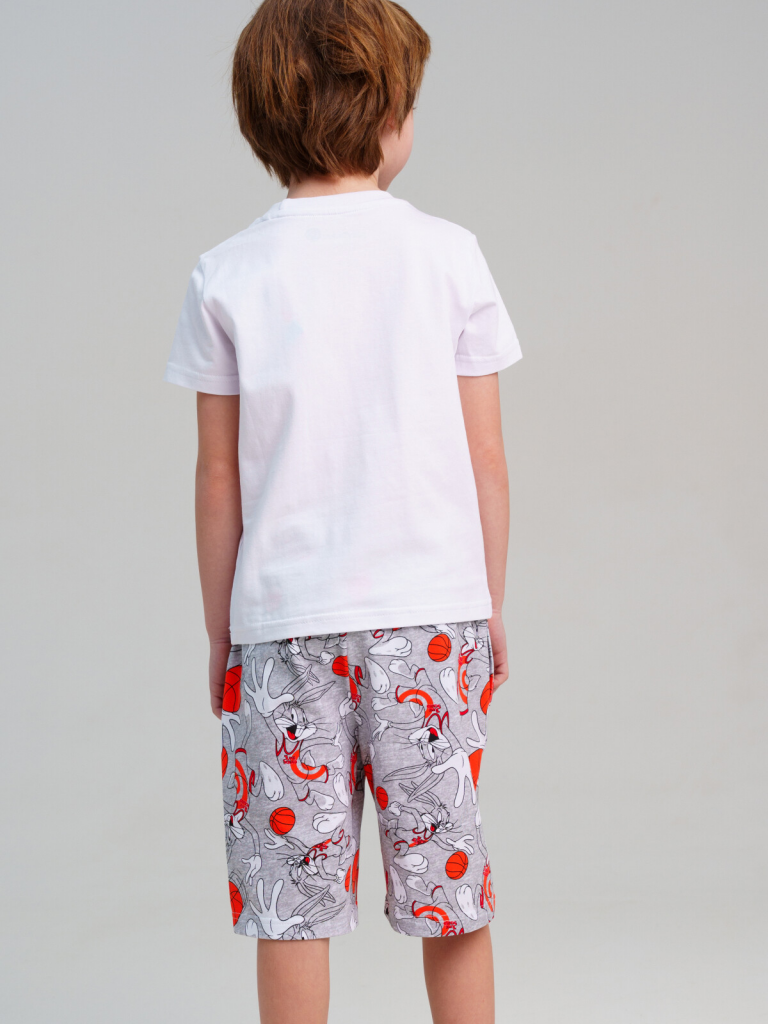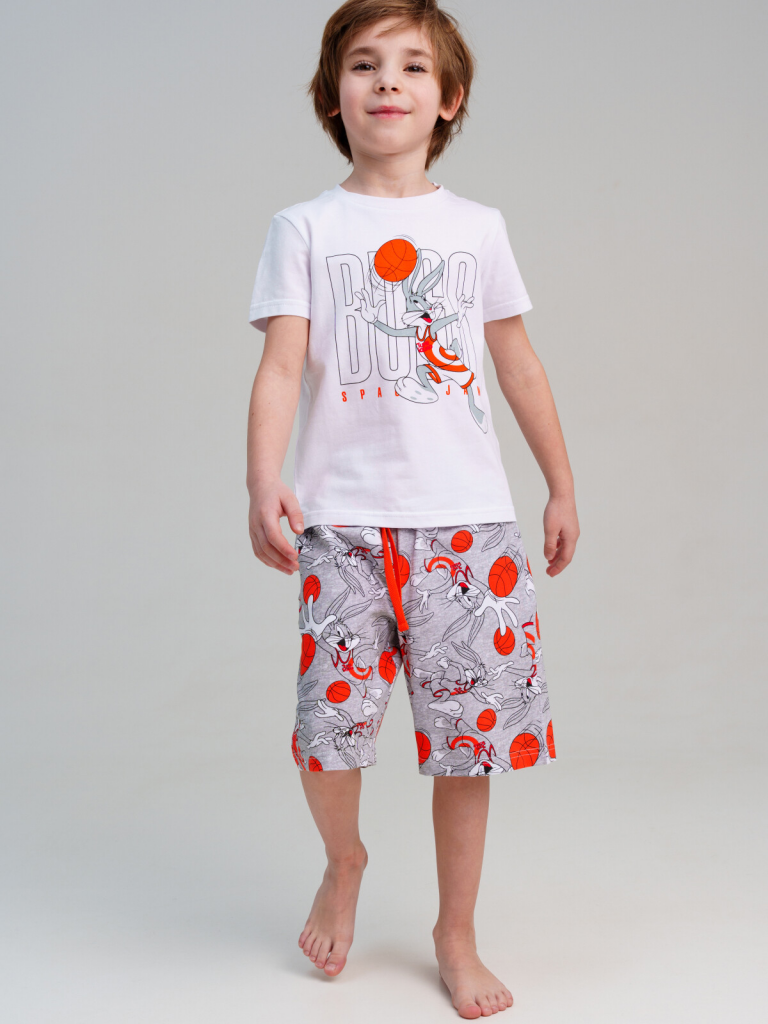 > Комплект трикотажный для мальчиков: фуфайка (футболка), шорты белый,серый,оранжевый